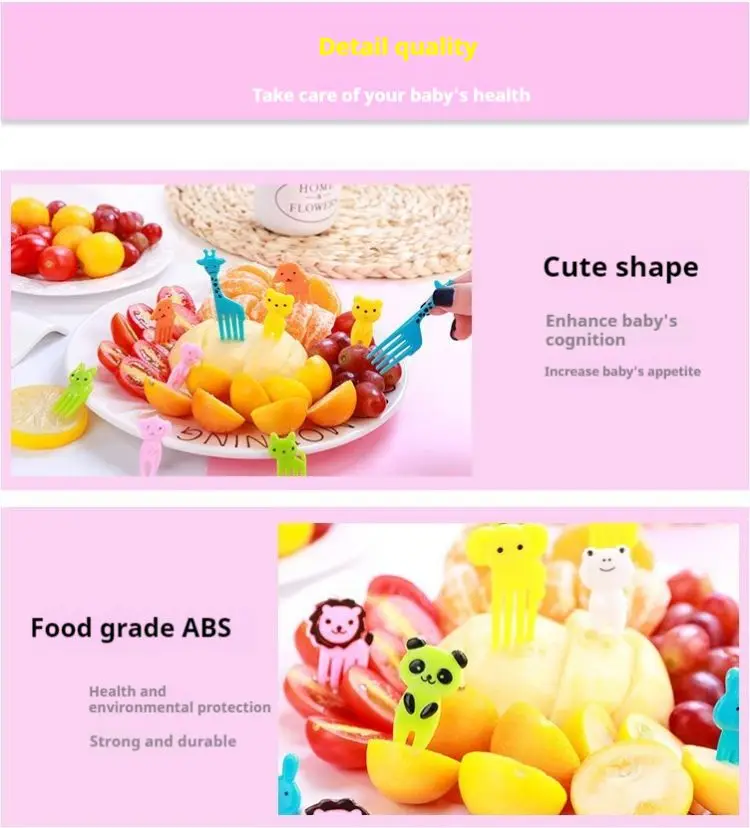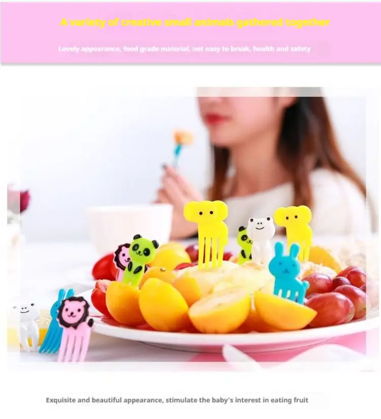 Este produto é um garfo de frutas infantil fofo de desenho animado com alto nível de aparência.Ele usa um design descartável,