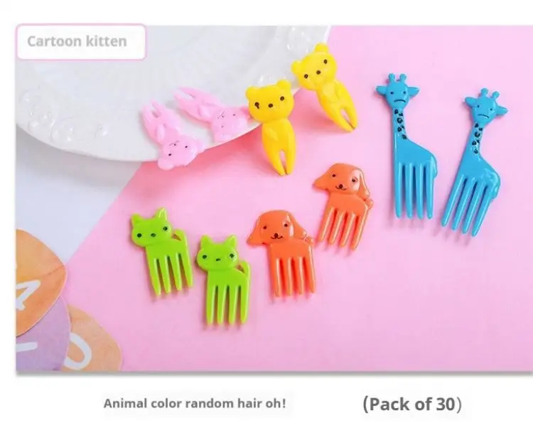30 garfos aleatórios do alimento animal dos pces, palitos reusáveis bonitos e engraçados dos desenhos animados do alimento da fruta dos animais dos desenhos animados, garfos da salada da fruta, bento caixa acce