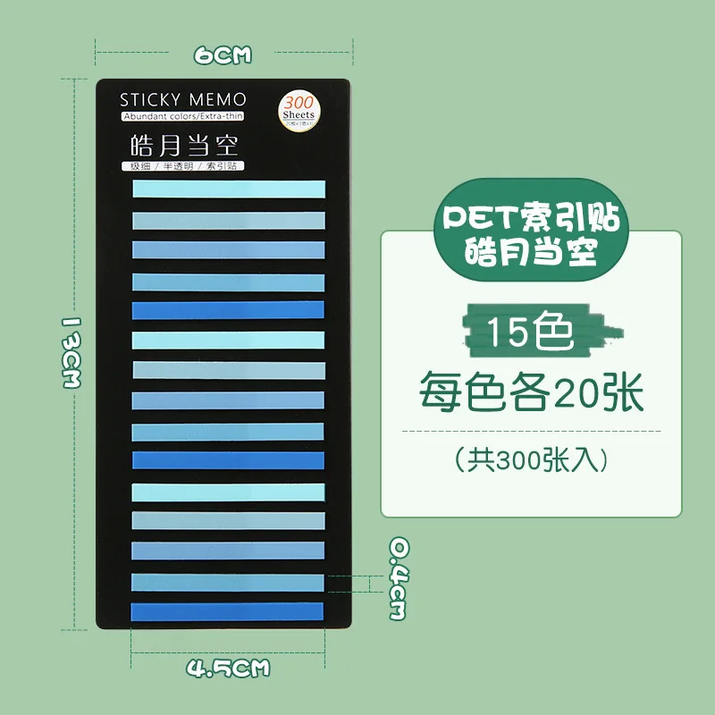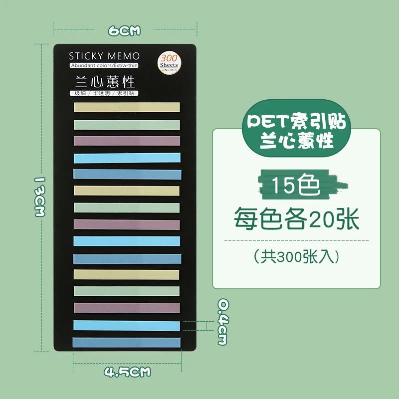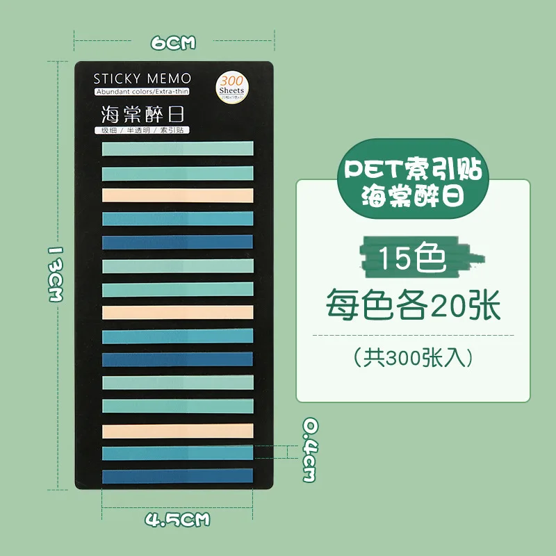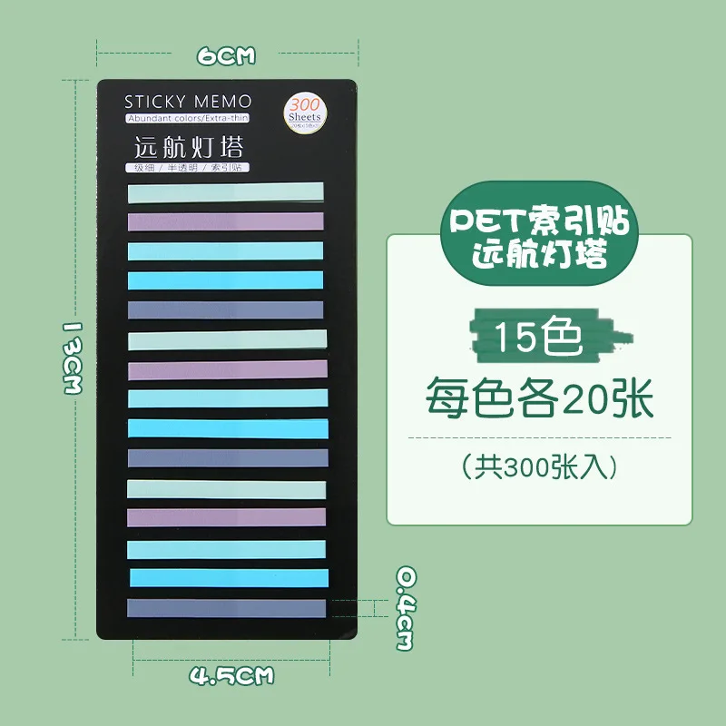 - > 300 pçs cor tiras translúcidas pet índice adesivo nota destaque marca adesivos assunto marcadores estudante papelaria nota pegajosa