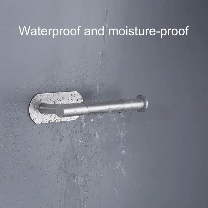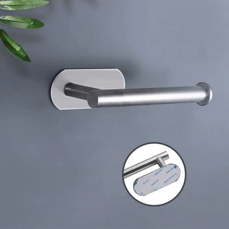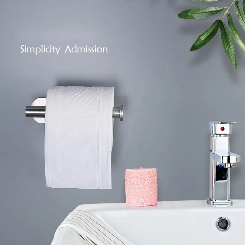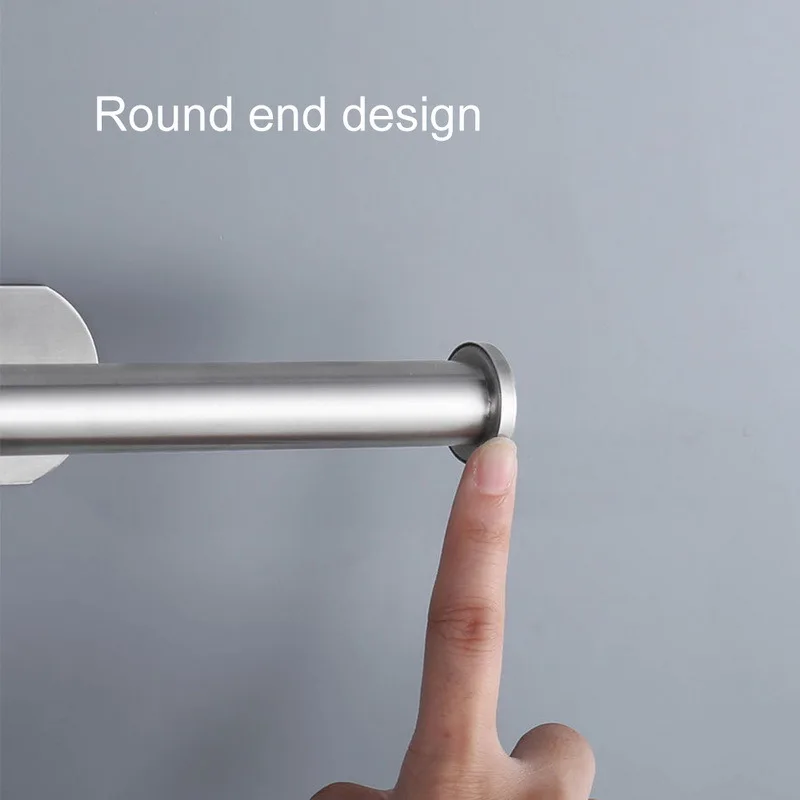 <<Boa qualidade: o botão de aço inoxidável na extremidade da barra evita que o rolo de papel higiênico caia.