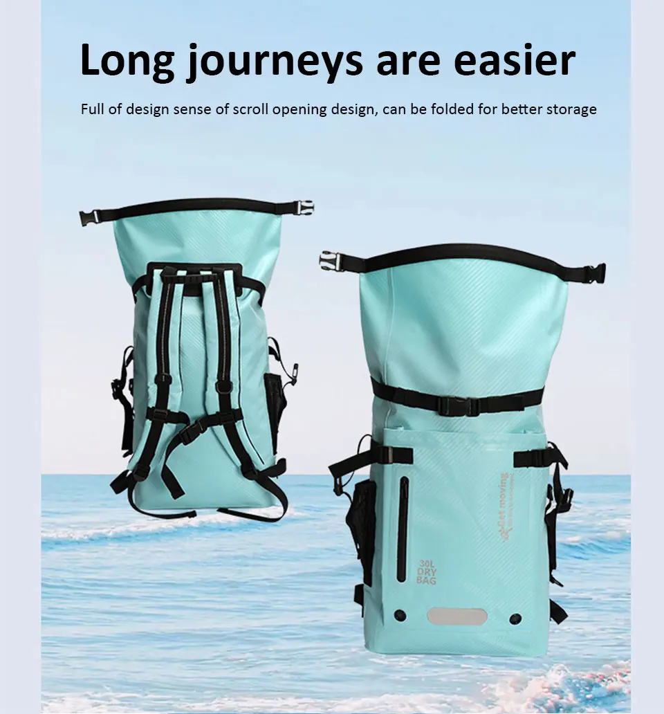 - > 30l pvc natação à prova dwaterproof água saco seco alças duplas rafting esportes caiaque canoagem saco de natação kit viagem mochila saco de armazenamento