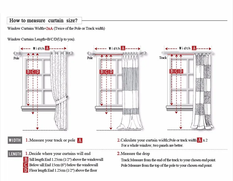 Largura das cortinas da janela =2xA(Duas vezes do pólo ou largura da trilha)