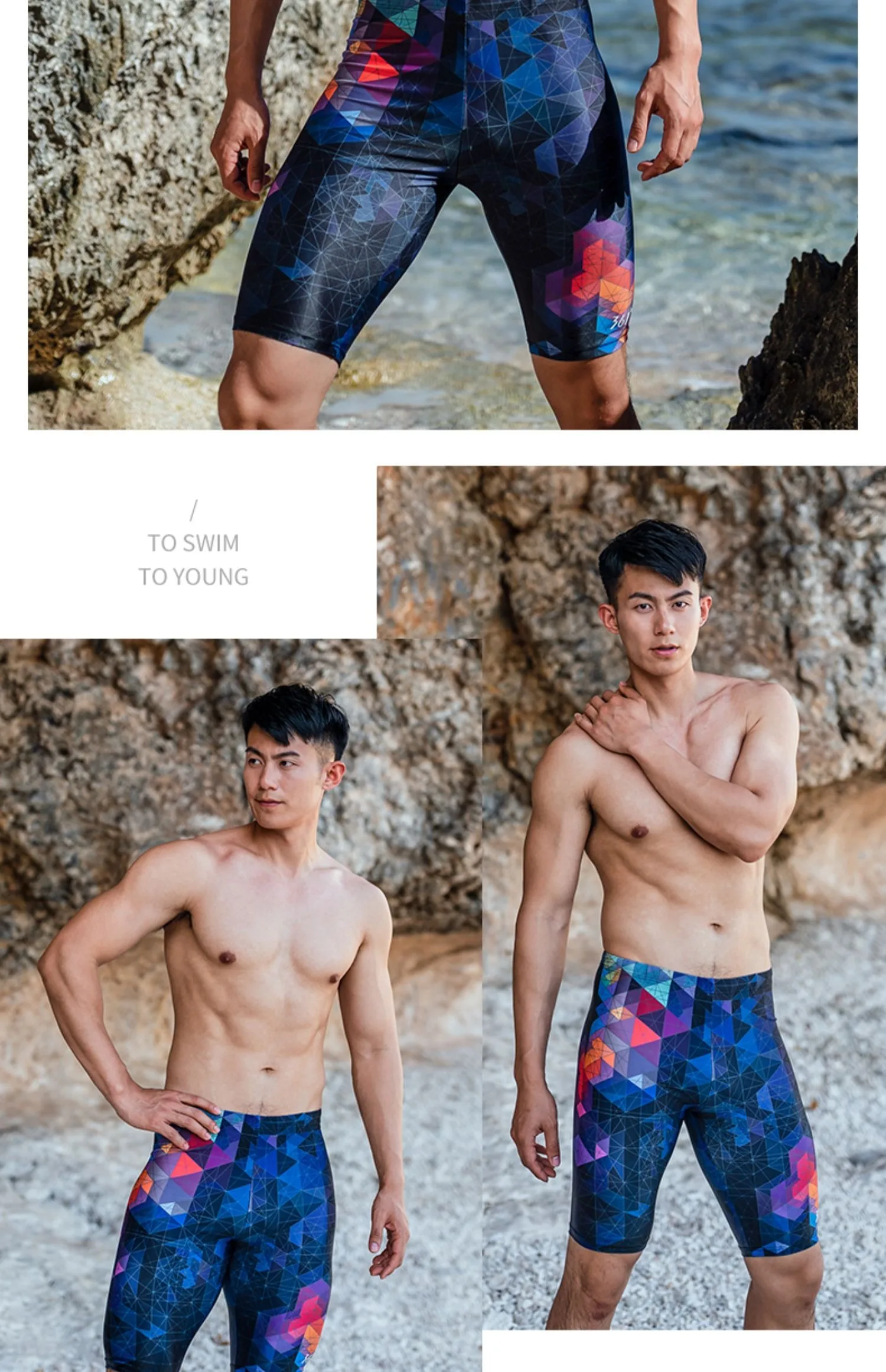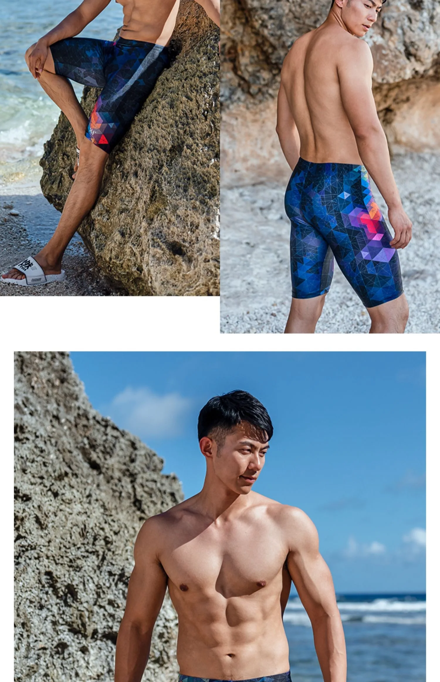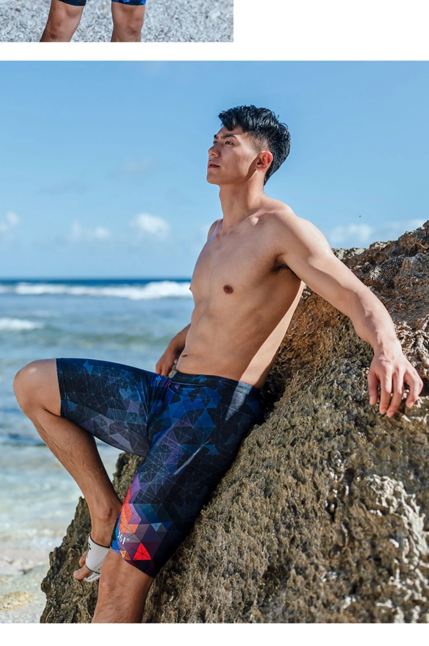 36 ° Calções de Natação Masculinos de Secagem Rápida, Crimento até o Joelho, Fundo Plano, Calções de Natação de Crim...