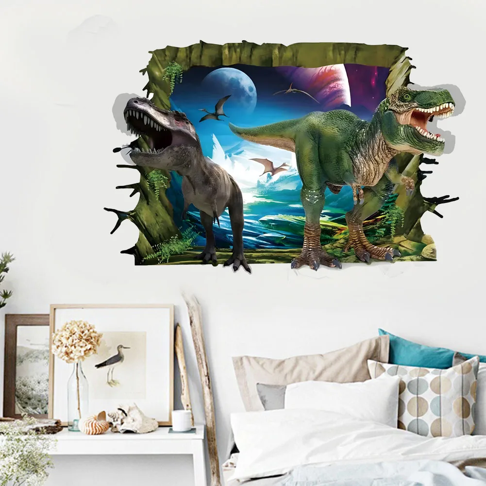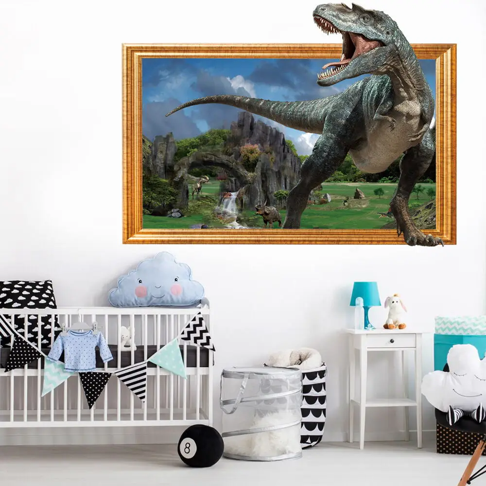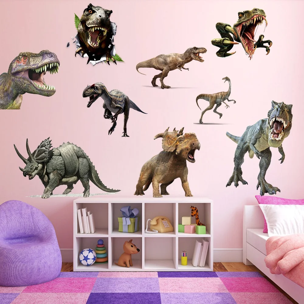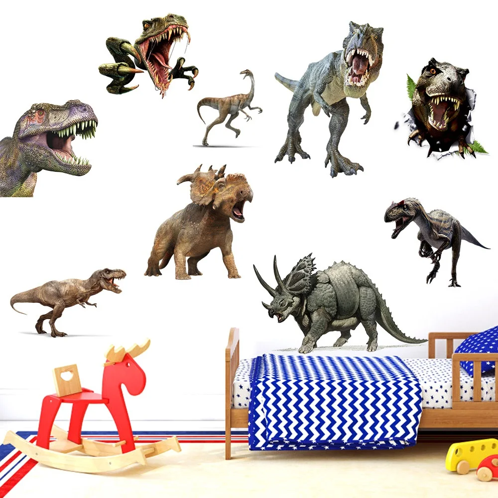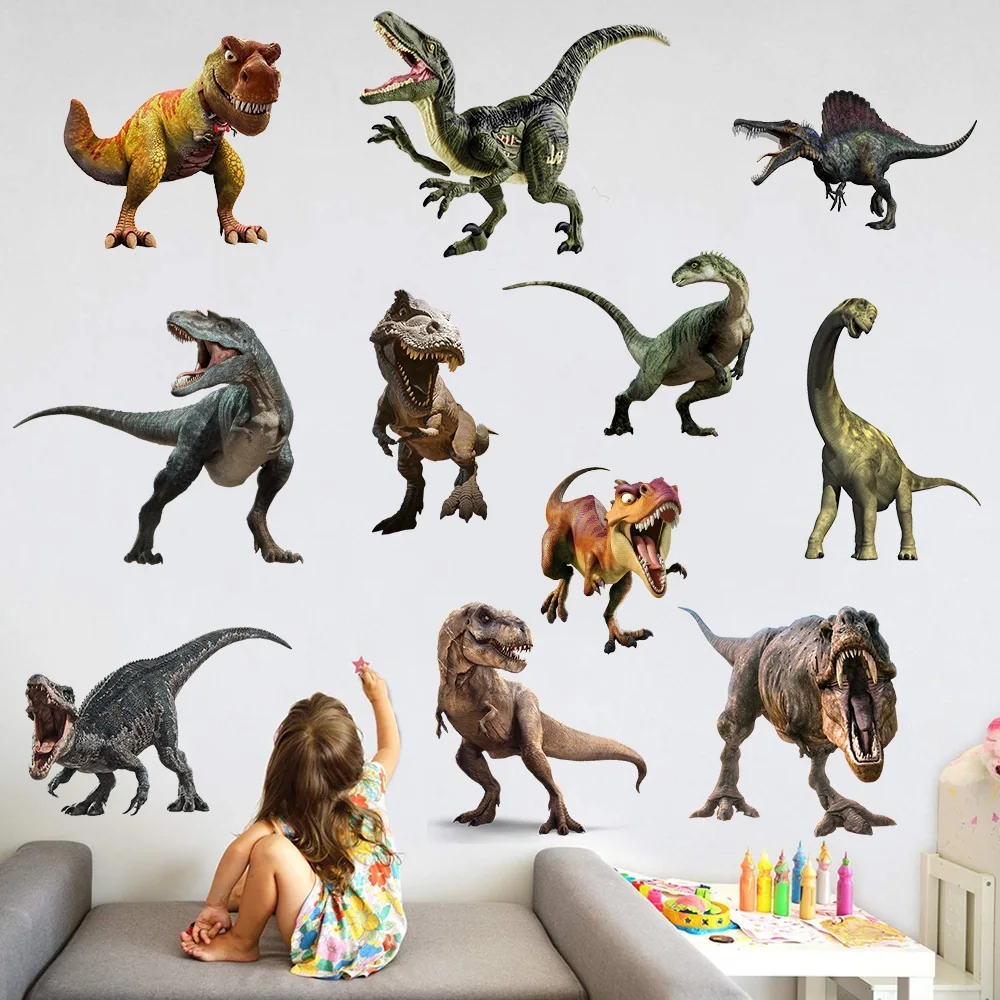 3d dinossauro animação adesivos de parede menino crianças quarto decoração da parede tiranossauro pvc decalques murais arte removível para decoração casa