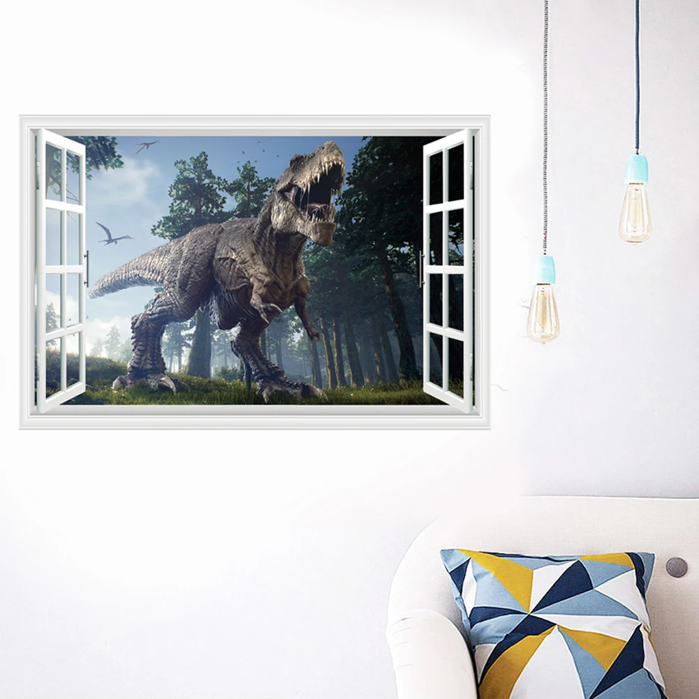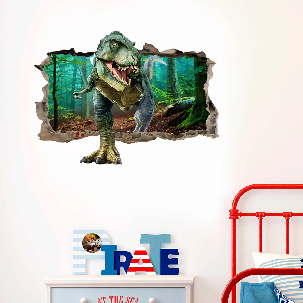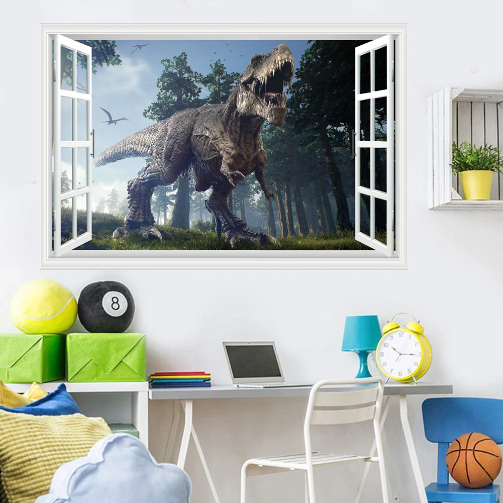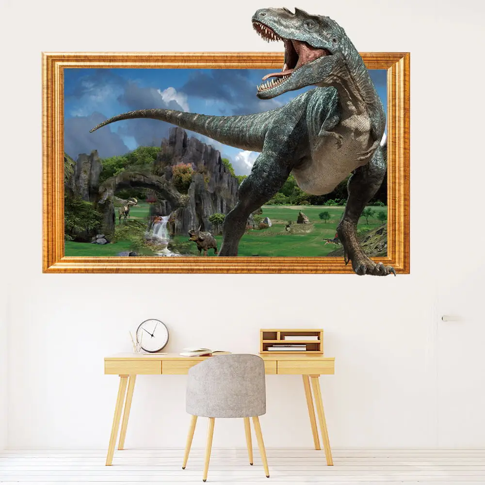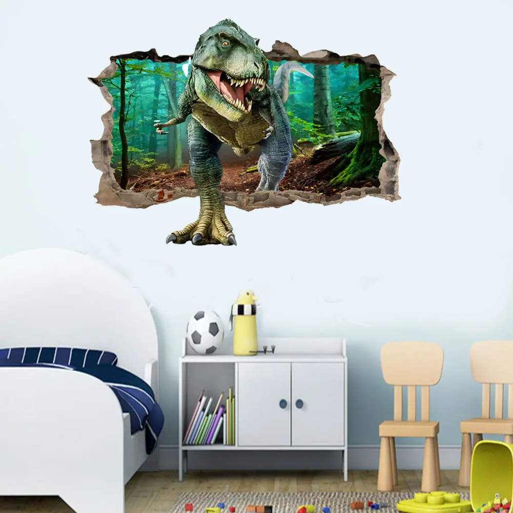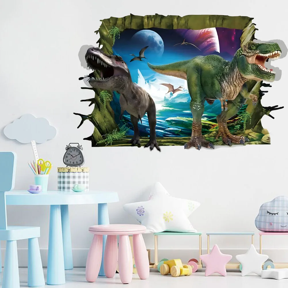 3d dinossauro animação adesivos de parede menino crianças quarto decoração da parede tiranossauro pvc decalques murais arte removível para decoração casa