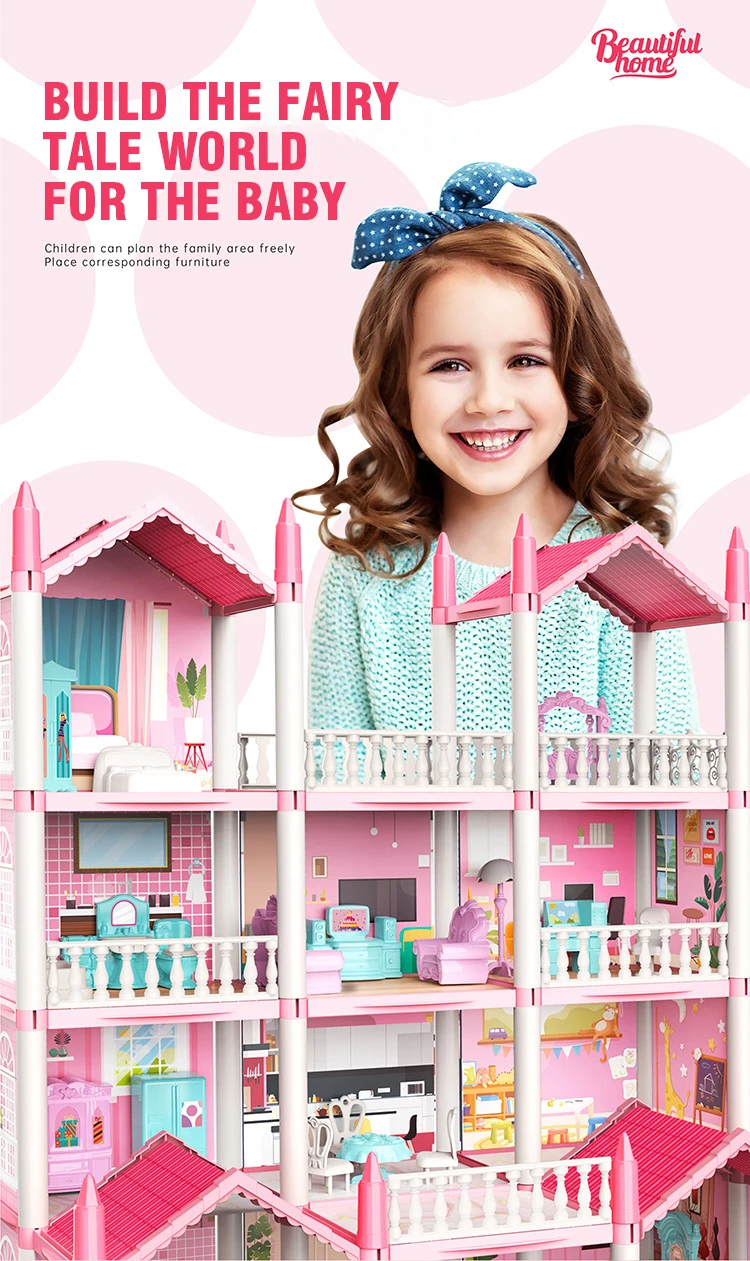 3d diy sonho princesa castelo villa montagem casa de boneca conjunto brinquedo menina família brinquedo das crianças música casa de boneca montagem villa casa