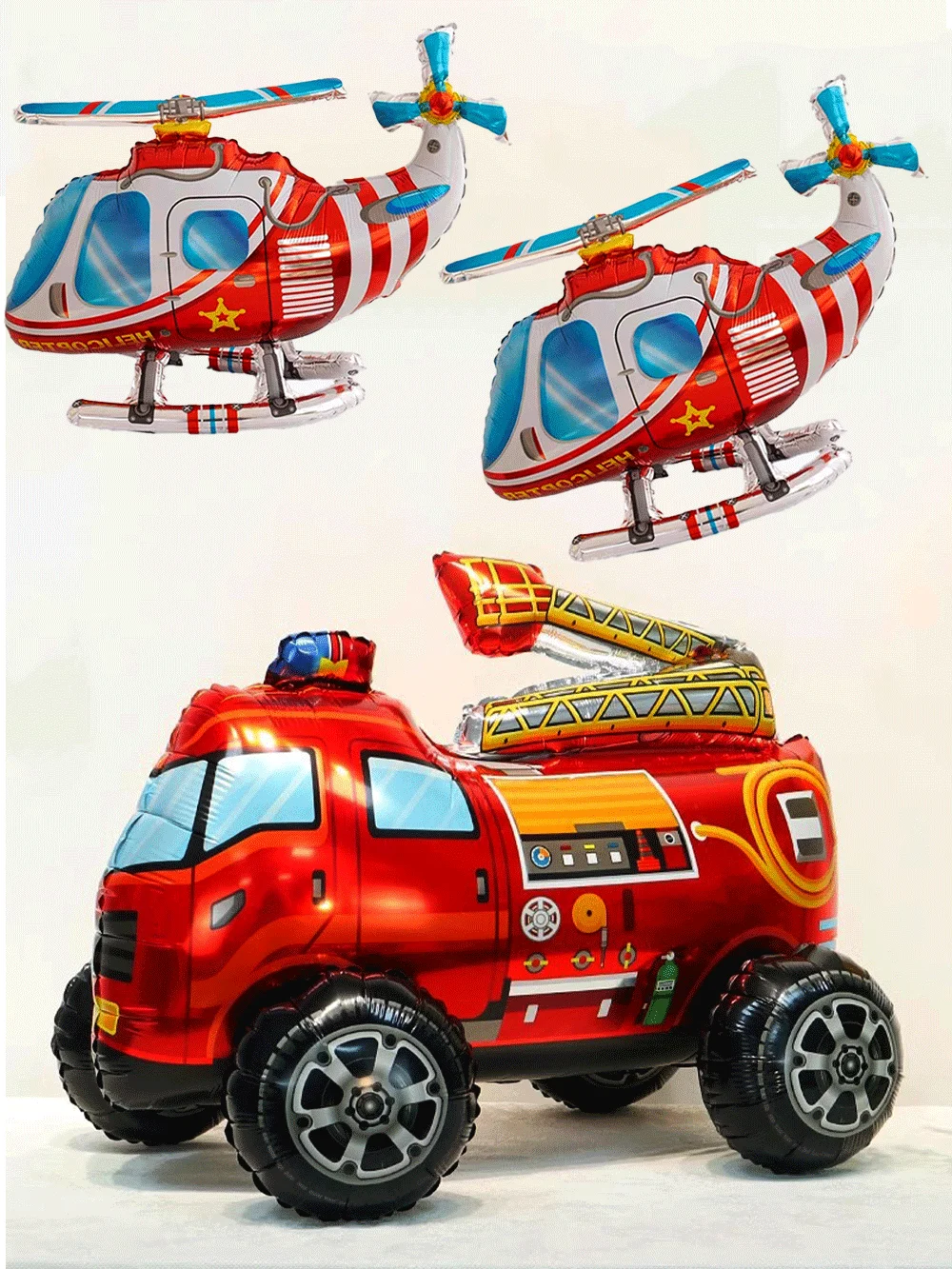 - > 3d montado caminhão de bombeiros folha balão grande helicóptero de resgate de incêndio balão meninos bombeiro festa de aniversário decoração chá de bebê