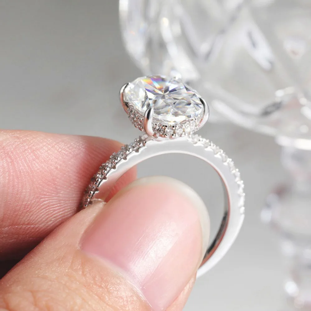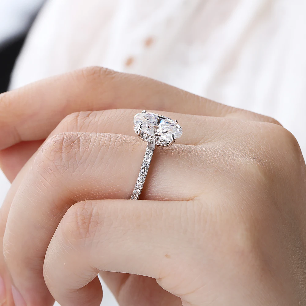 Estilo: oval Anel de moissanite com halo oculto para mulheres
