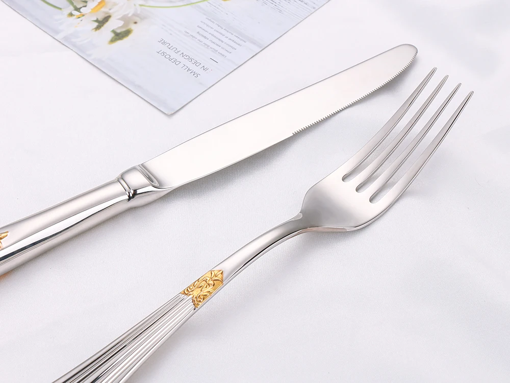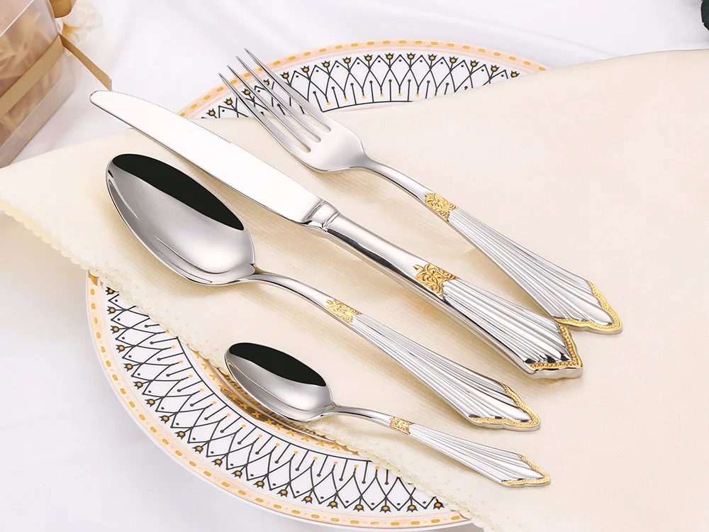 Esta louça real de aço inoxidável é perfeita para jantares em família, apartamentos, festas, hotéis e bares.