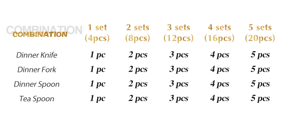 Inclui:: Faca, Garfo, Colher, Colher de Chá