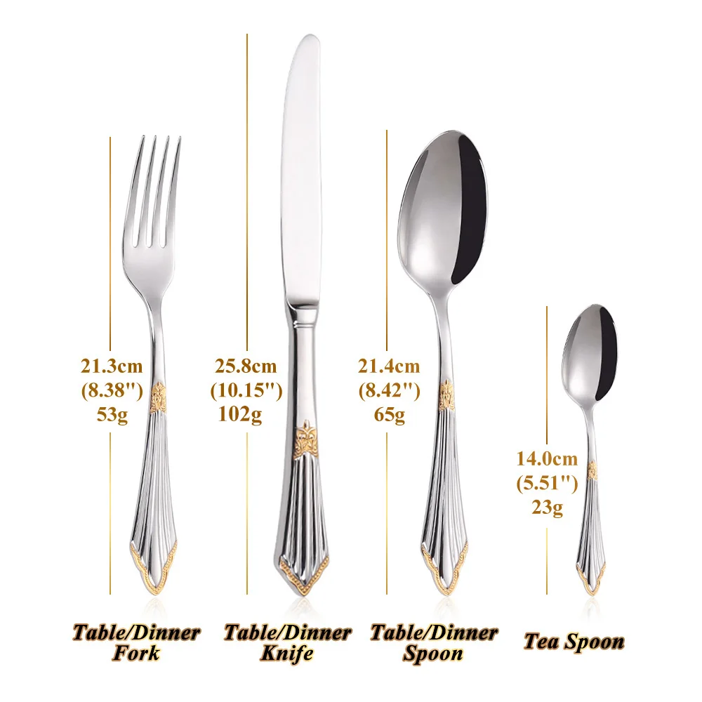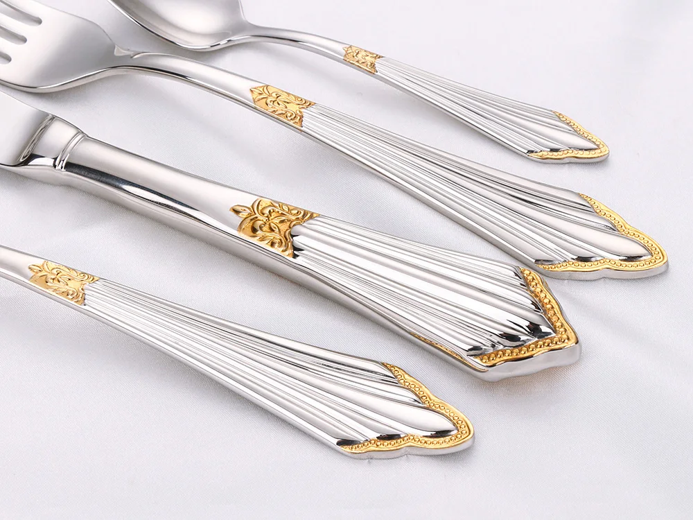 4/8/12/16/20 peças banhado a ouro talheres de luxo talheres máquina de lavar louça segura 18/10 conjunto de talheres de aço inoxidável para casa casamento