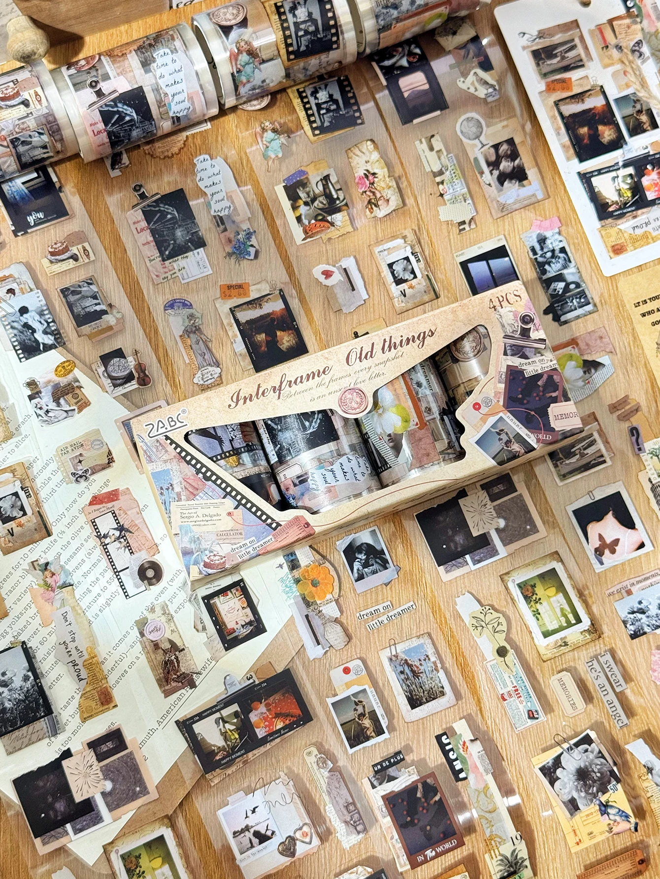 - > 4 rolos/caixa fita adesiva retrô para caderno pet, adequada para folhetos diy e decoração de presente, elegante e bonita