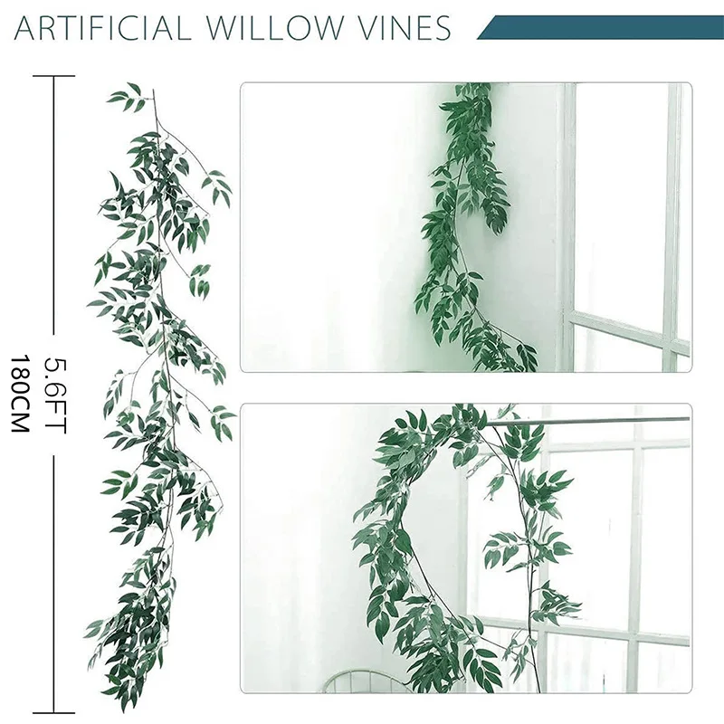 5.7ft artificial folha de salgueiro rattan simulação ramo salgueiro planta folha verde casamento casa ao ar livre festa de casamento decoração guirlanda