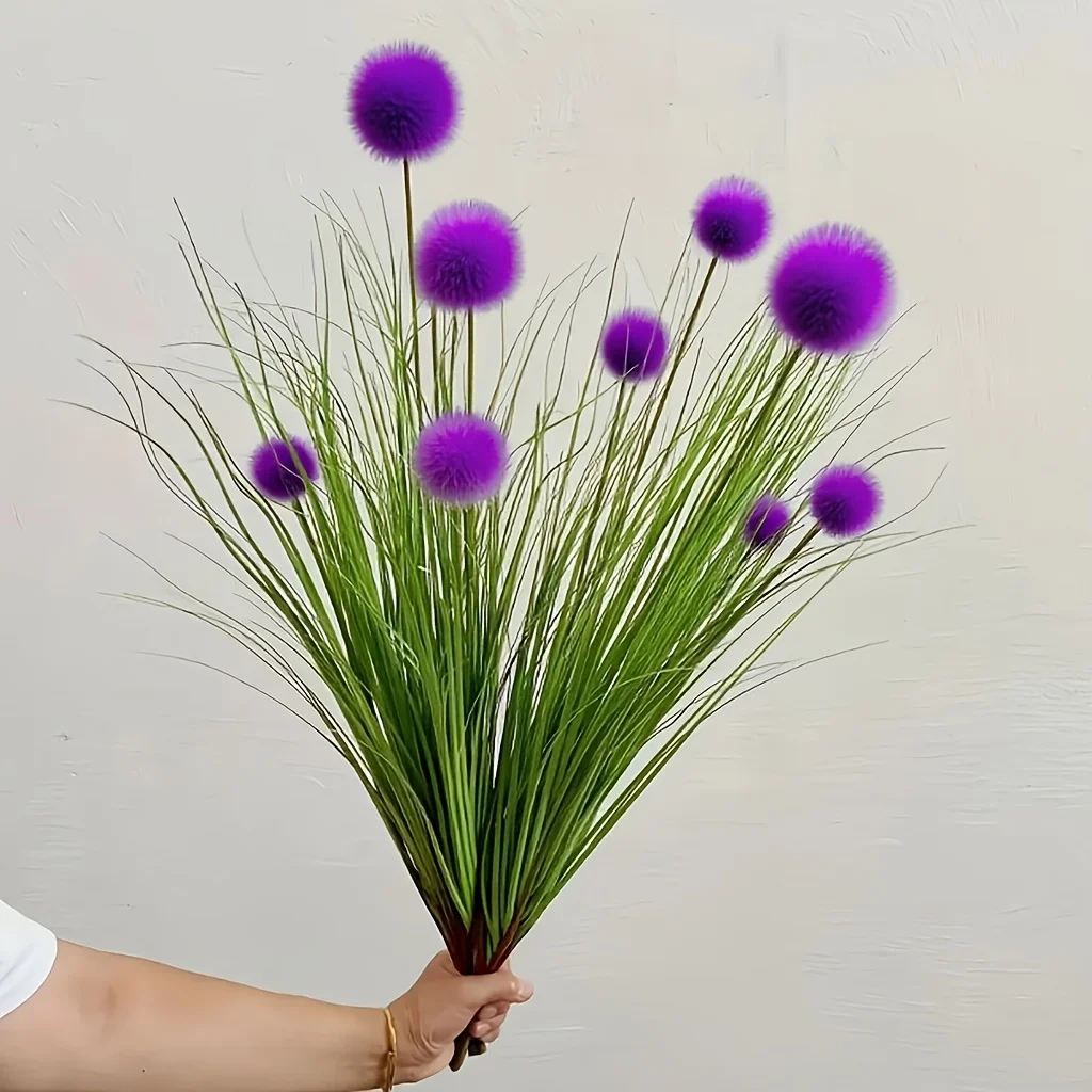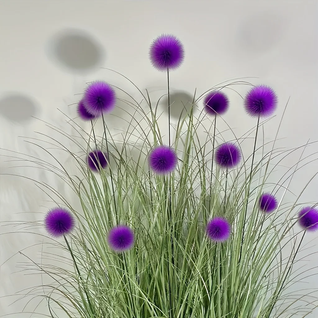 5 peças de plantas artificiais de grama bulbosa roxa, adequadas para decoração de casa, decoração de festa de festival, decoração de jardim de pátio