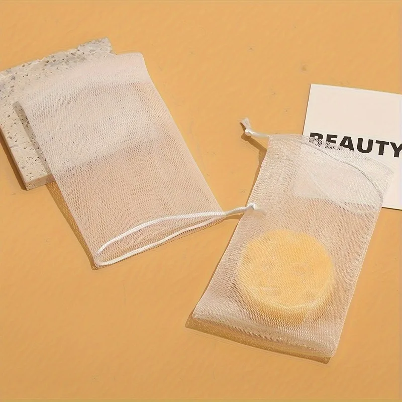 - > 5 sacos de sabão esfoliantes reutilizáveis dos pces com malha dupla & fechamento do cordão, armazenamento fácil de pendurar