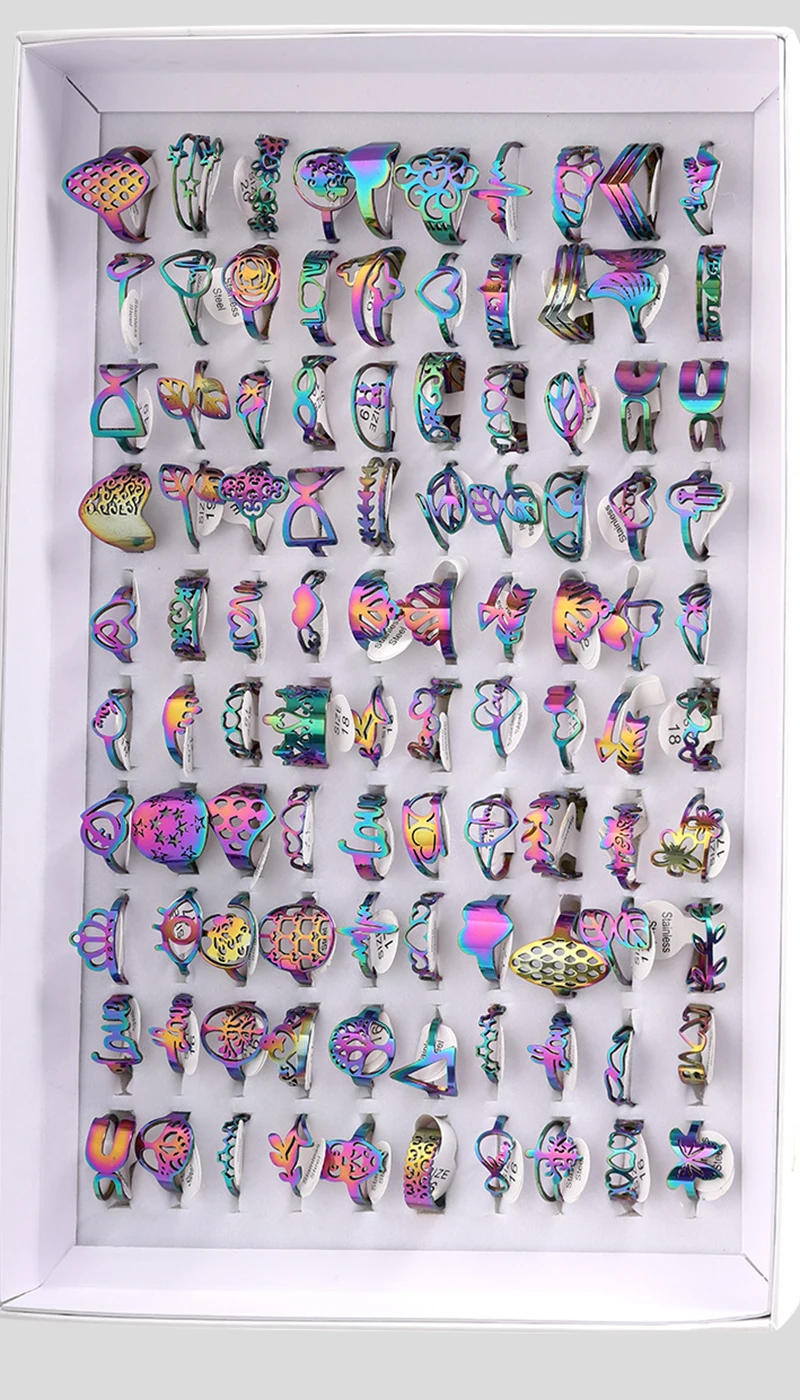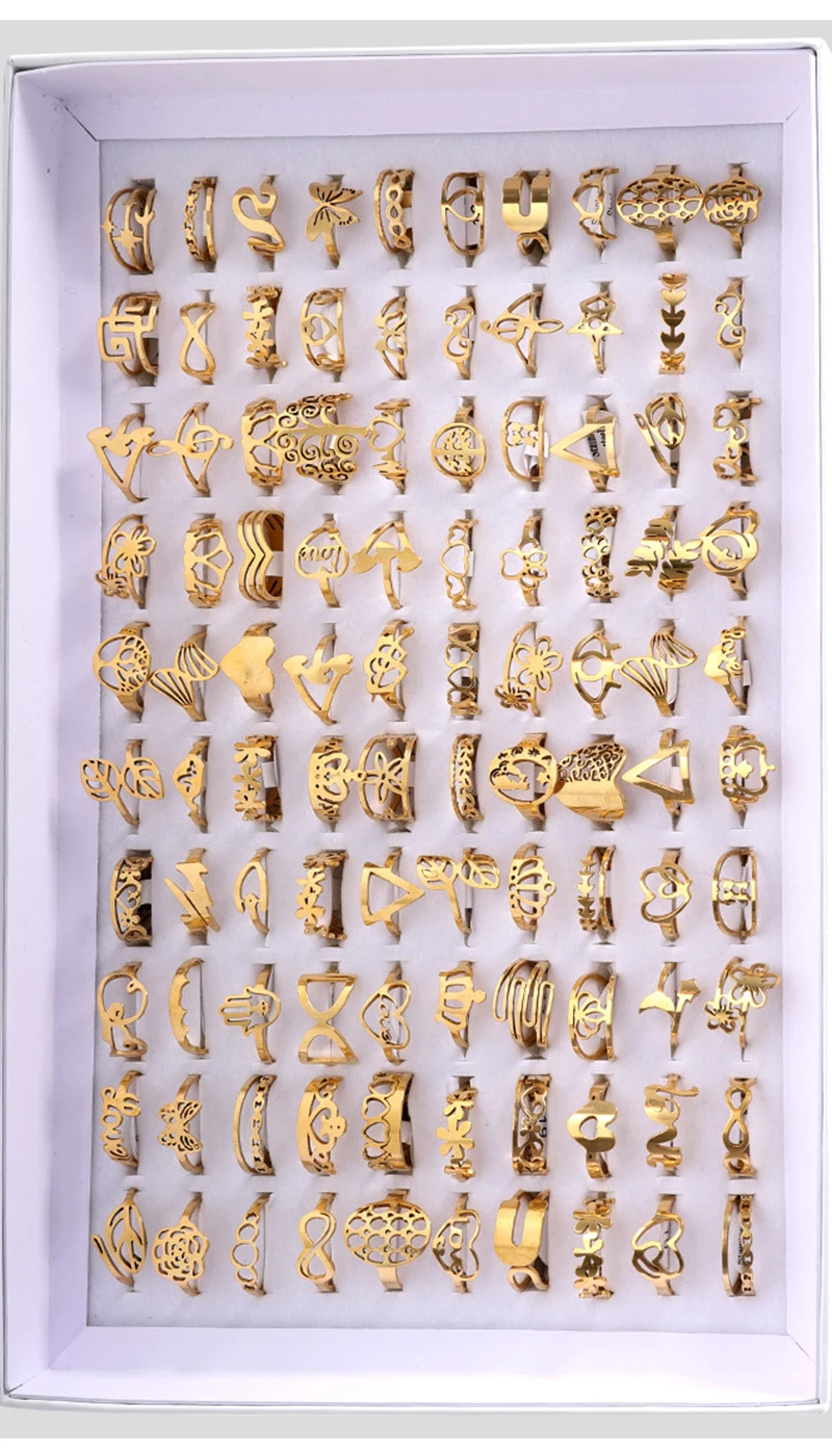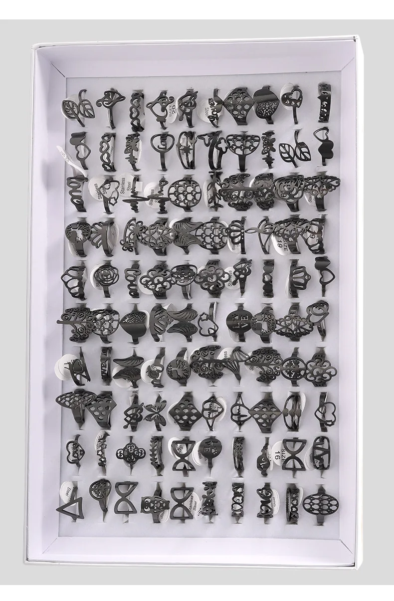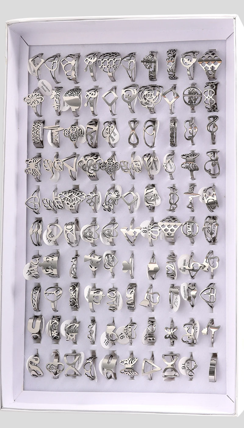 - > 50 pçs/lote moda oco para fora anéis de aço inoxidável para mulheres homens estilo mix flor coração coroa jóias presentes festa