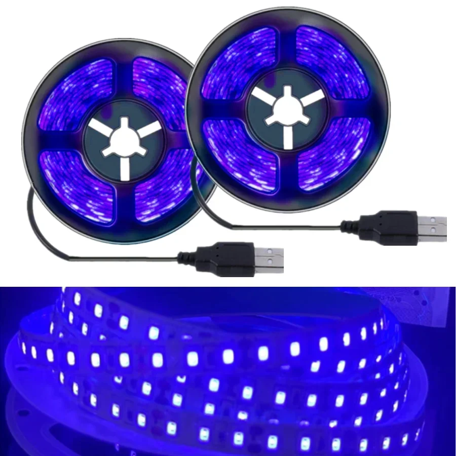 5v usb uv led luz de tira flexível smd2835 roxo 395-405nm ultravioleta preto led tira de luz detectar dinheiro casa decoração de natal