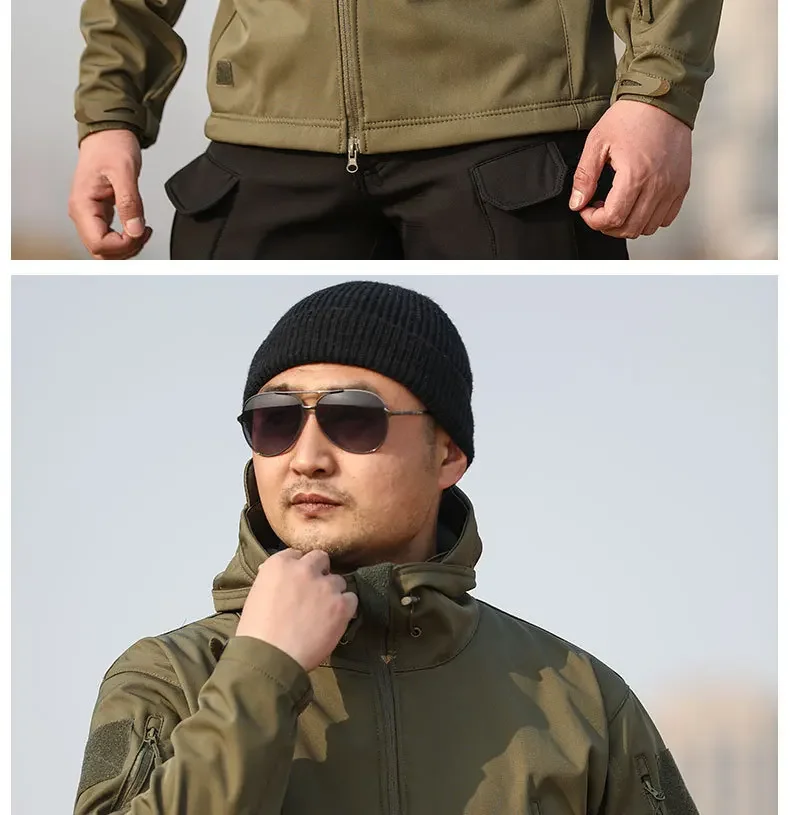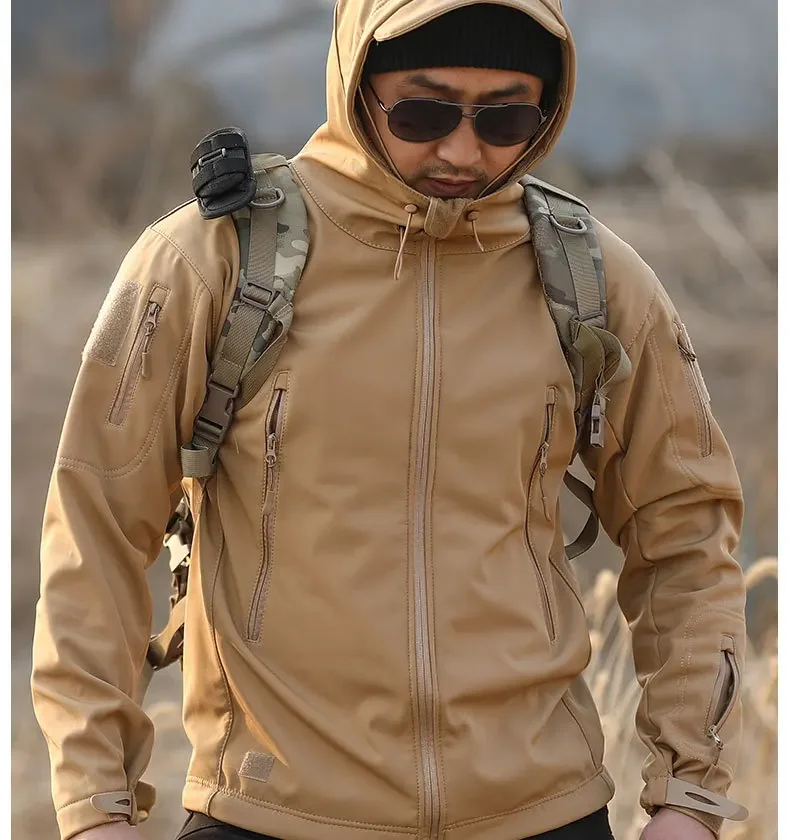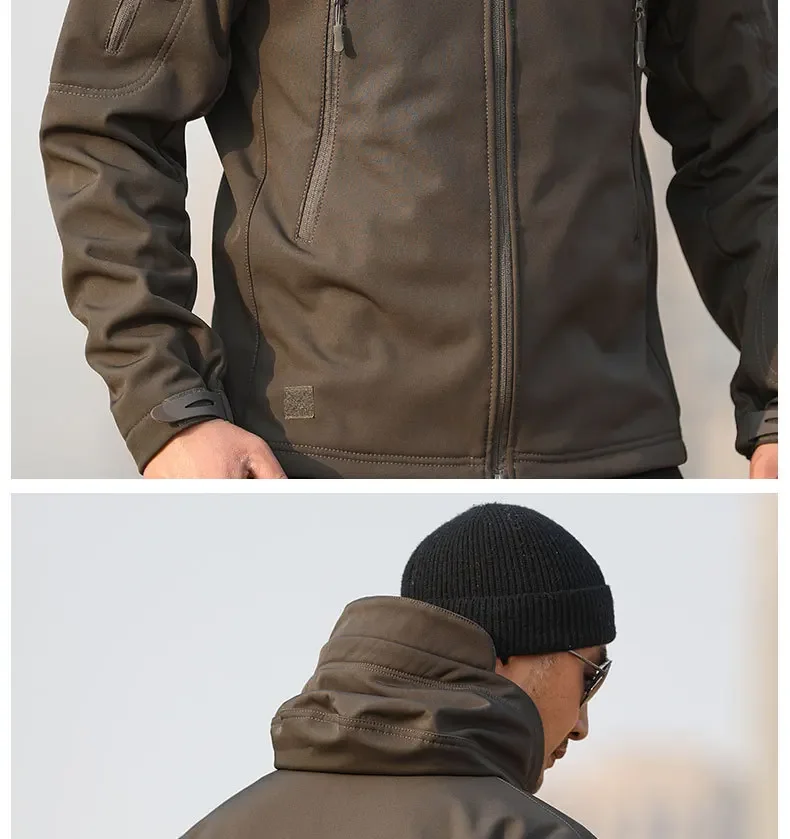 Jaqueta masculina três em um à prova de frio, camuflagem ao ar livre, quente, à prova d'água, veludo, outono e inverno, casaco macio com vários bolsos
