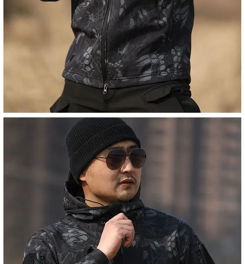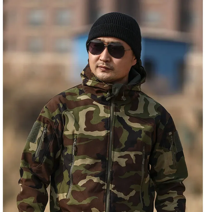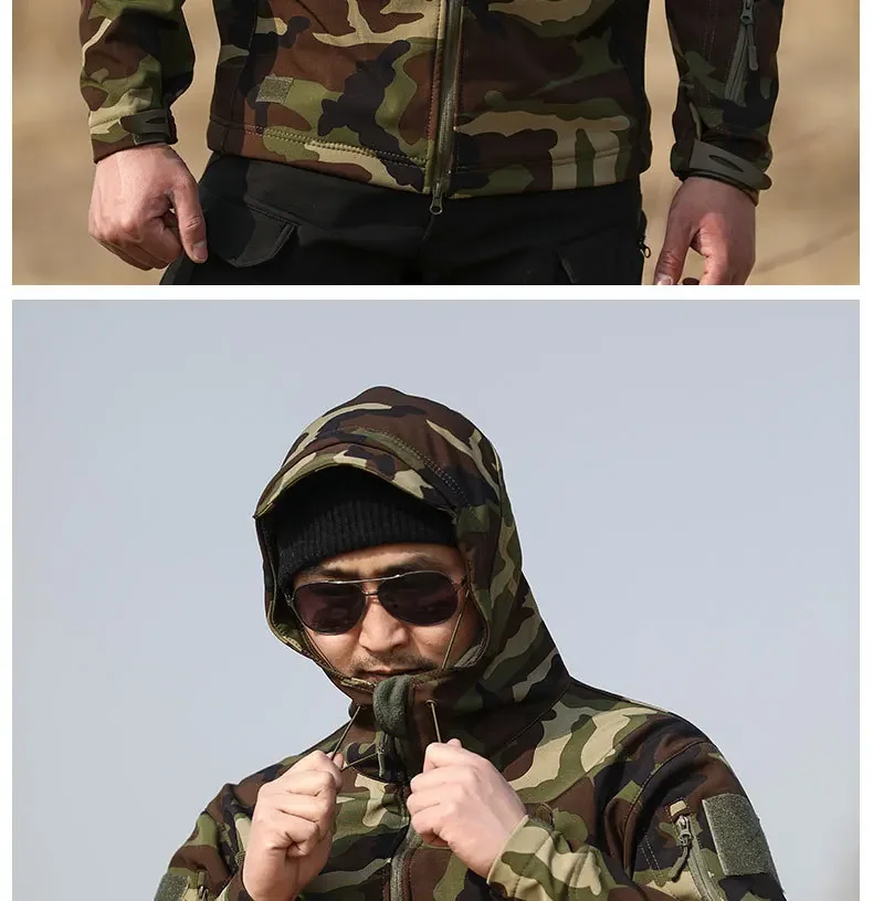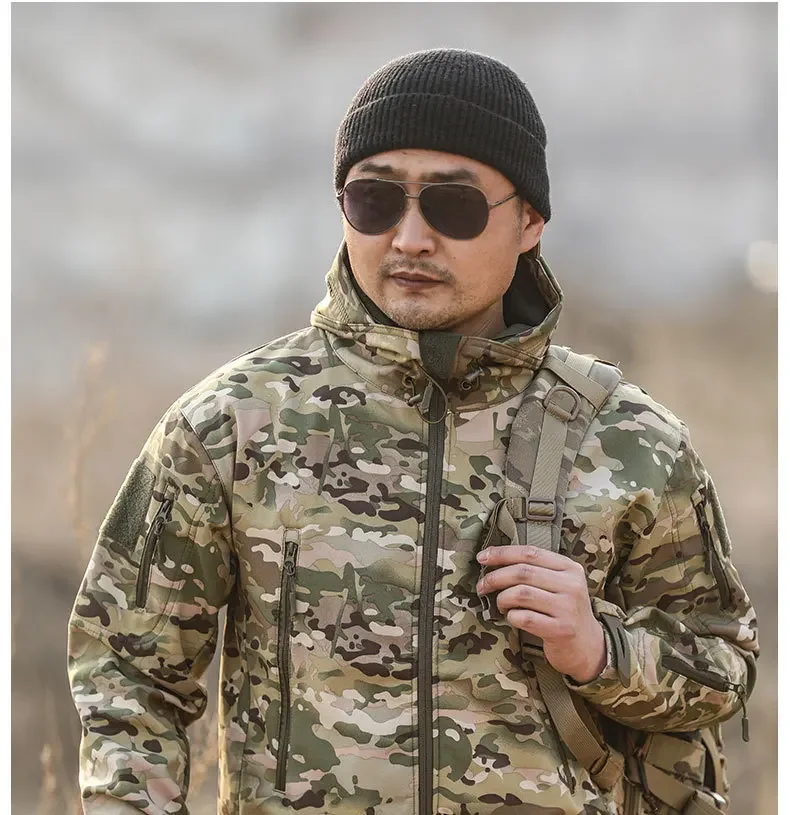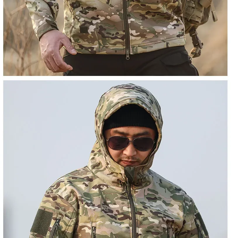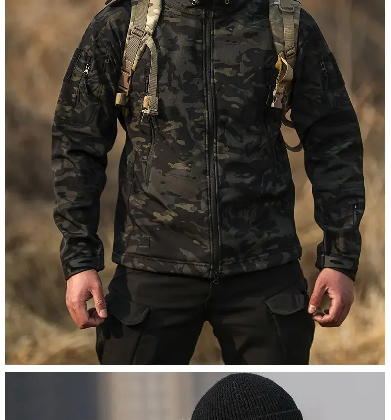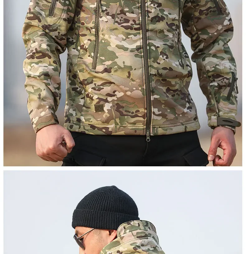 - > 5xl 6xl jaqueta de lã de inverno masculina casca macia tático casaco camuflado à prova d'água roupas multicamadas blusões