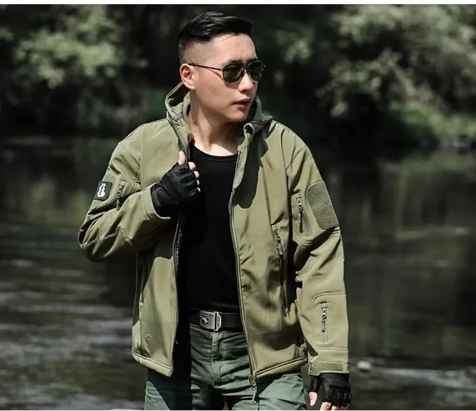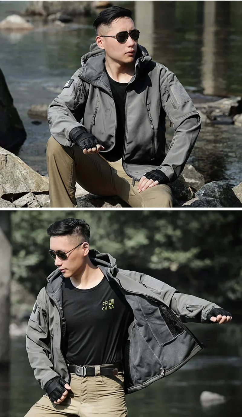 - > 5xl 6xl tático casca macia com capuz velo masculino inverno à prova de vento à prova dwindproof água casacos quentes ao ar livre jaqueta multi-bolso