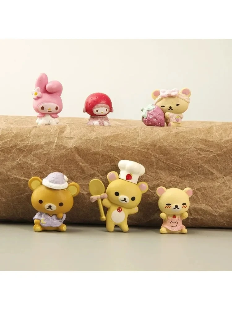 6 pçs sanrio mini figura minha melodia urso marrom chef chapéu figuras de ação kuromi boneca diy bolo decorar presentes brinquedos para crianças