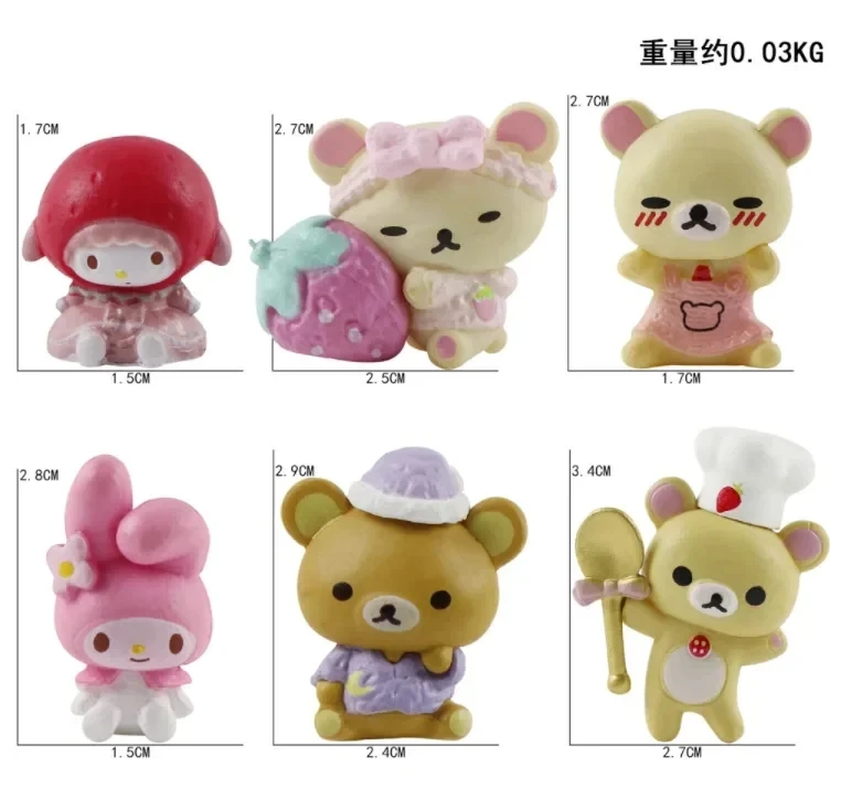 - > 6 pçs sanrio mini figura minha melodia urso marrom chef chapéu figuras de ação kuromi boneca diy bolo decorar presentes brinquedos para crianças
