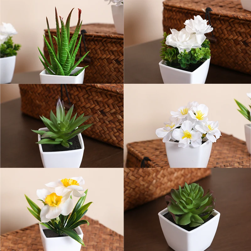 - > 6 peças, bonsai pequeno de plantas artificiais, artesanato diy, decoração de exibição de piso de mesa