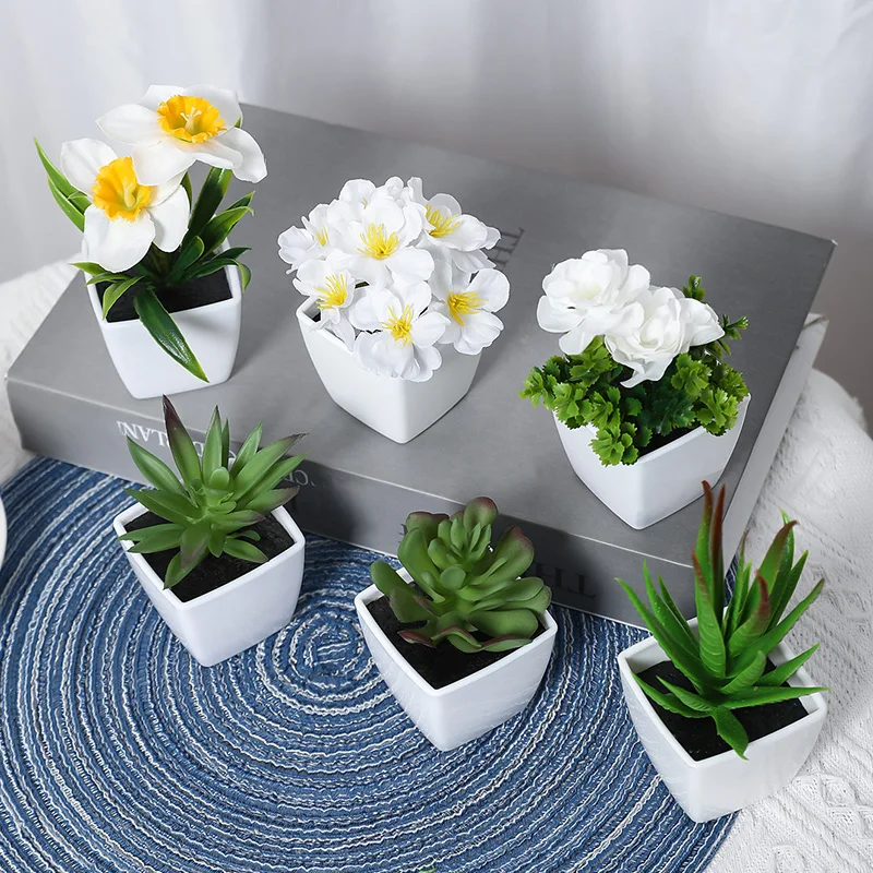 6 peças, bonsai pequeno de plantas artificiais, artesanato diy, decoração de exibição de piso de mesa