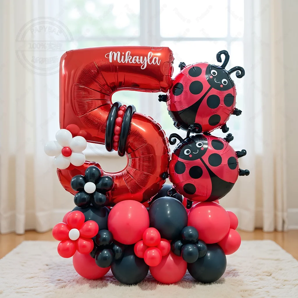 62 pçs ladybug balões de folha guirlanda arco kit número vermelho folha ballon 1-9 ponto preto feliz aniversário banner festa decorações ar globos