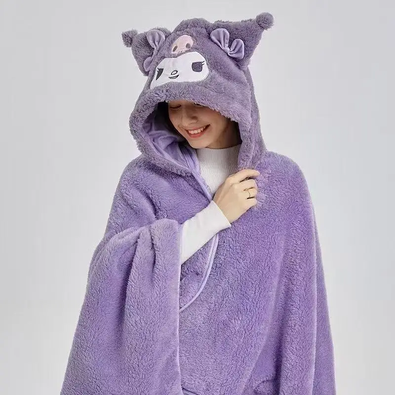 - > 70x140cm sanrio kuromi cinnamoroll criativo toalha de banho hellokitty padrão dos desenhos animados pele-amigável com capuz capa roupão presente brinquedos