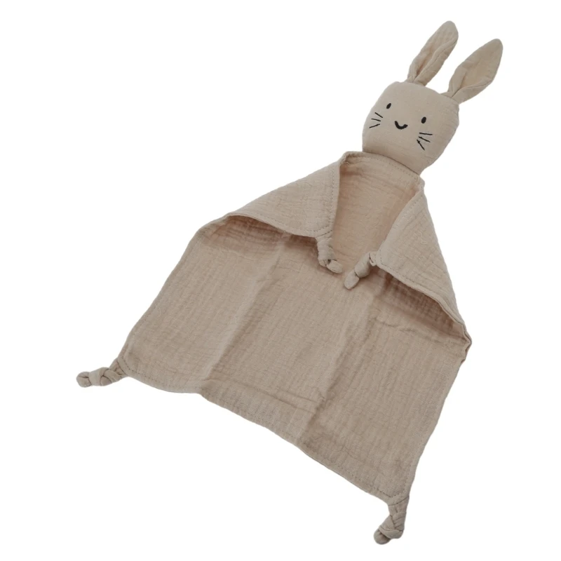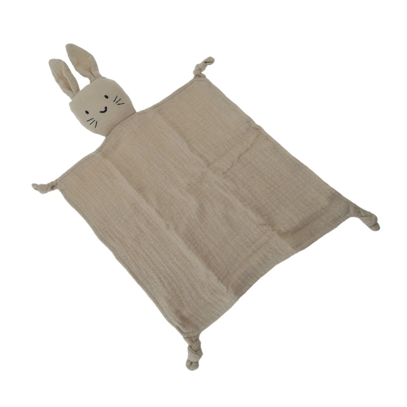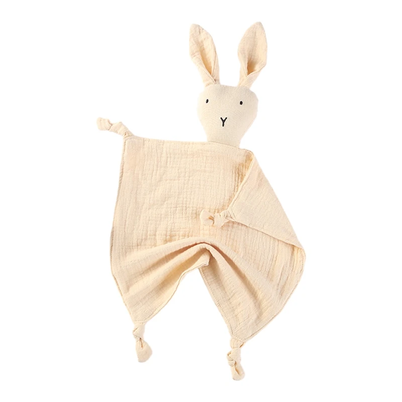 77HD Cobertor segurança para bebês, toalha calmante, algodão macio, musselina, coelho para Dol