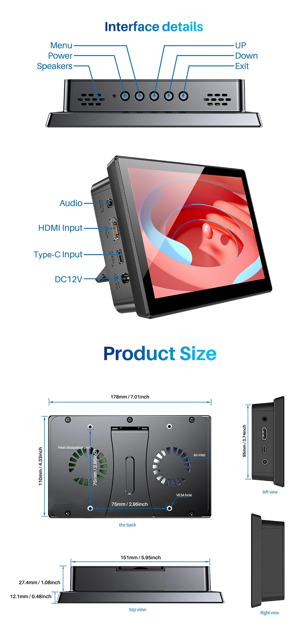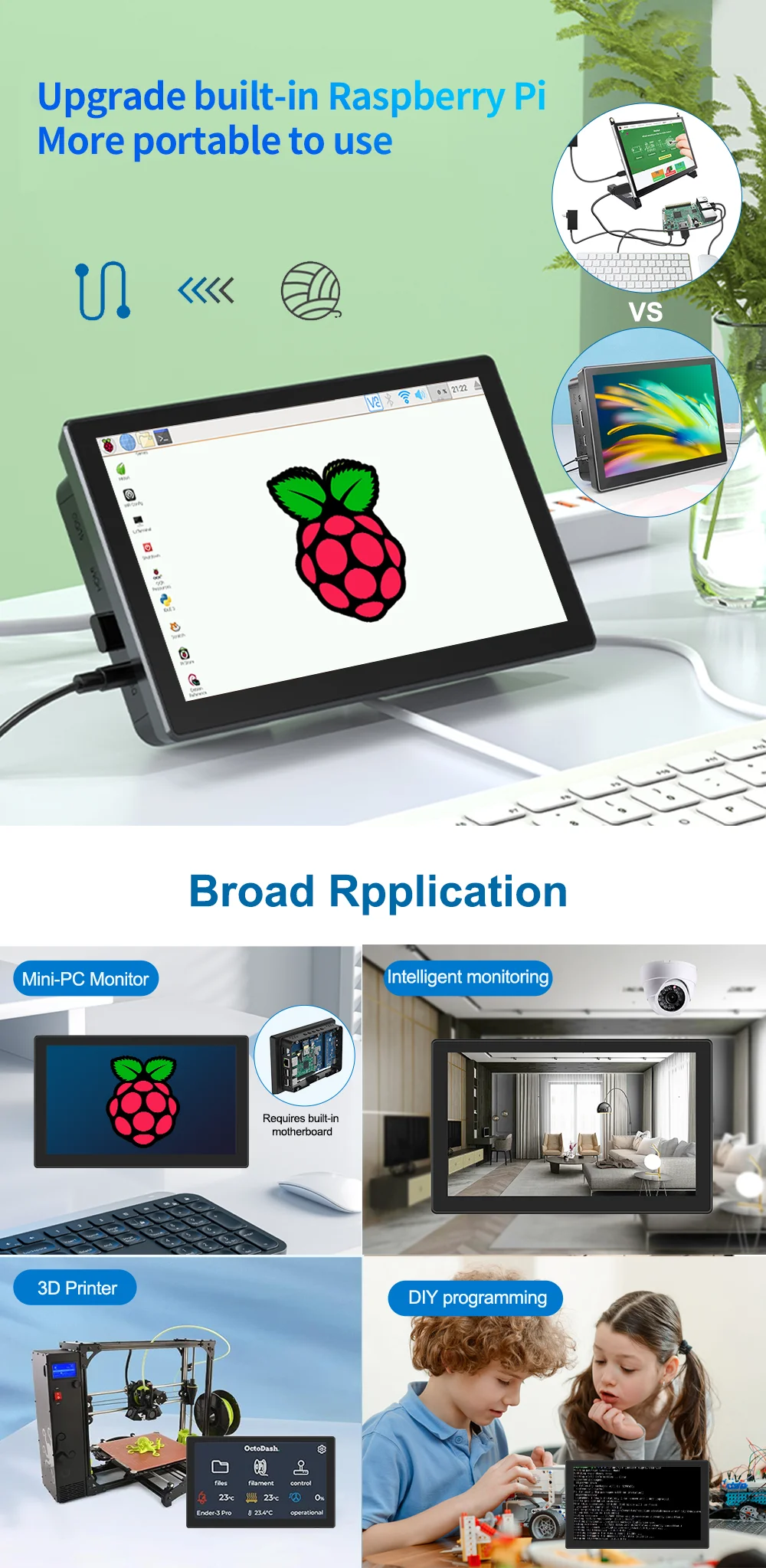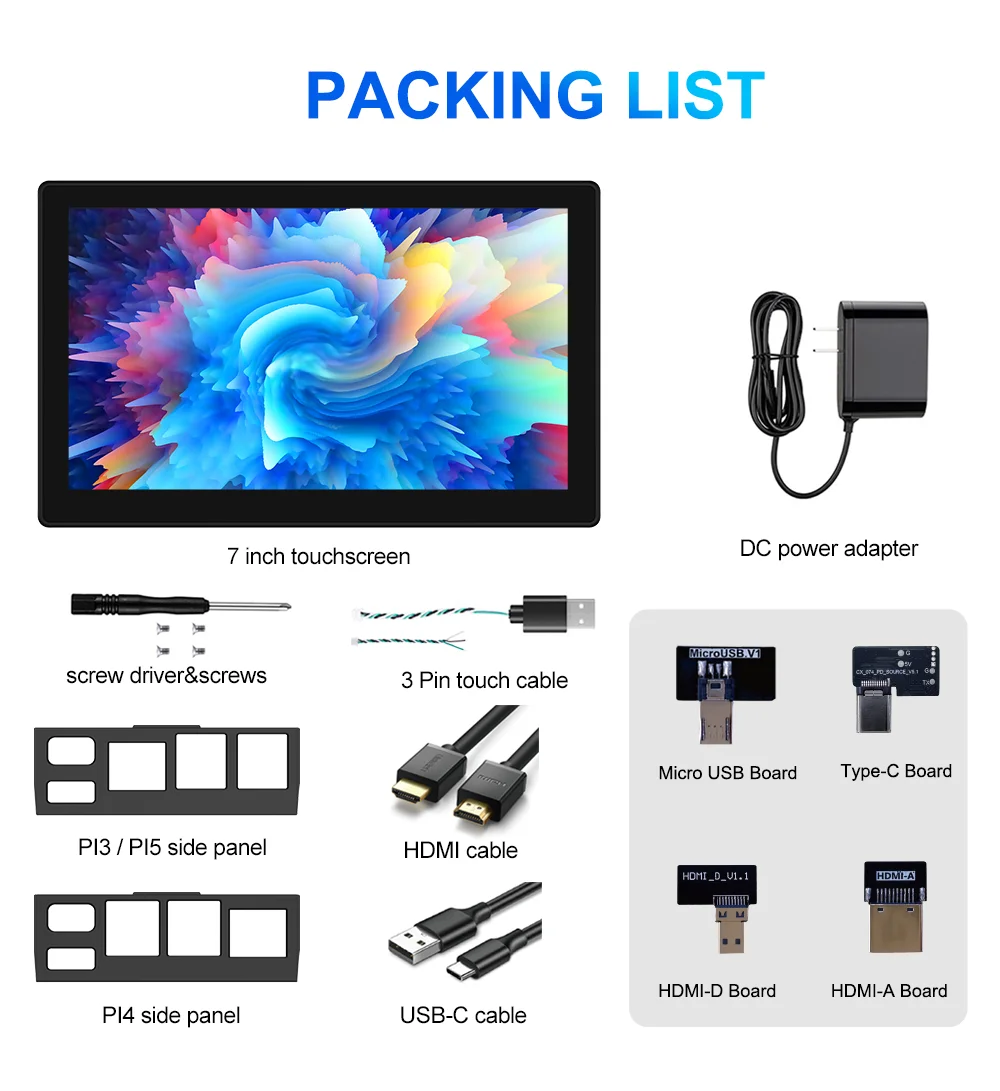 - > 7inch Touch Screen Raspberry Pi 3 4 5 HDMI Touch Monitor Banana Pi Display Industrial para Type-C VESA para Pi 3 4 Laptop Sub Xbox