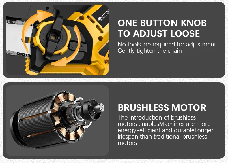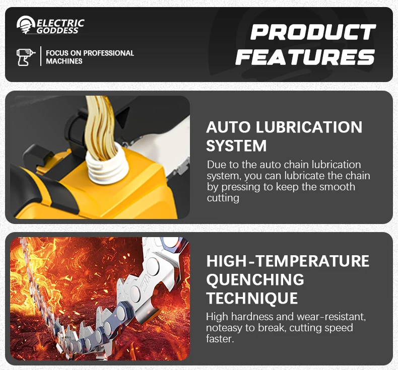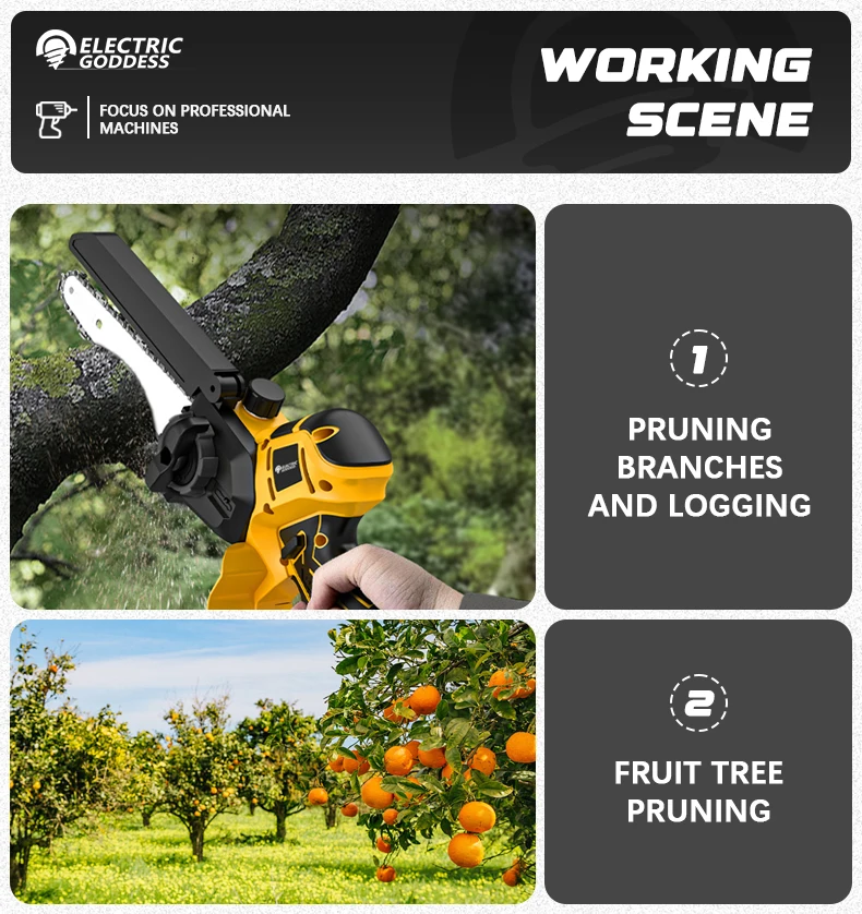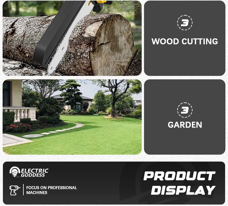 - Motor de cobre sem escova, forte potência, saída mais estável do que a motosserra convertida com rebarbadora, não é fácil de superaquecer e queimar.