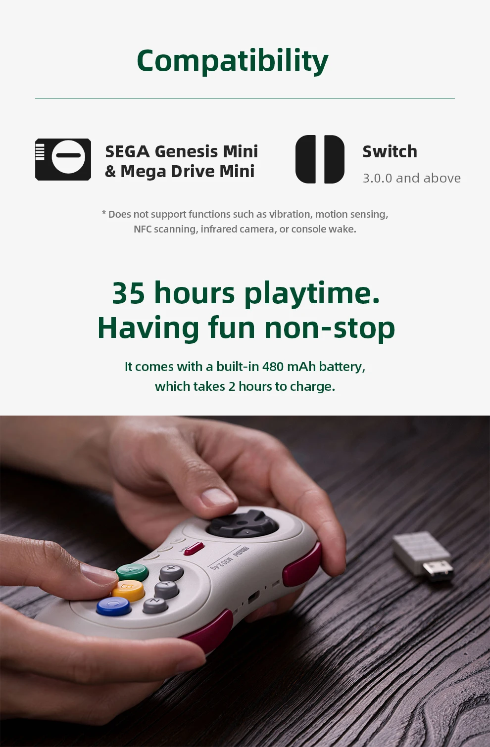 - > 8BitDo - Gamepad controlador sem fio M30 2.4G para Sega Genesis Mini e Mega Drive Mini - Sega Genesis