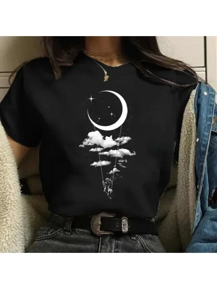 90s lua harajuku engraçado 90s camiseta feminina menina dos desenhos animados gráfico impresso preto senhoras camiseta casual mulher camisa kawaii camiseta