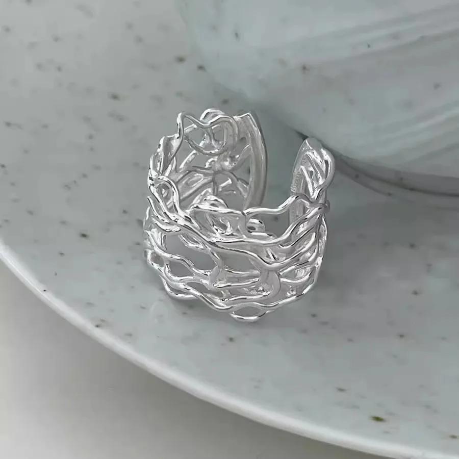 - > 925 prata esterlina oco para fora linha anel para mulher malha irregular punk geométrico jóias presente atacado