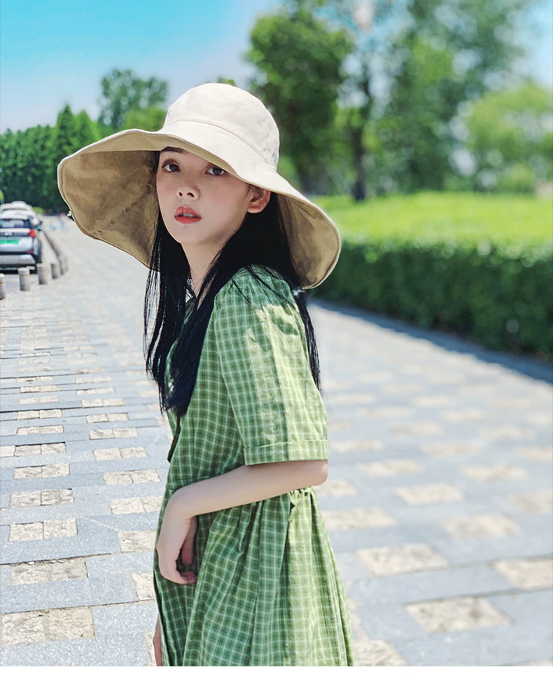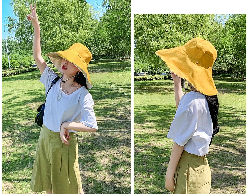 Aba larga upf 50 + chapéu de sol feminino proteção anti-uv caminhadas pescador boné dobrável verão sólido praia chapéu 2024 dupla face chapéu de sol