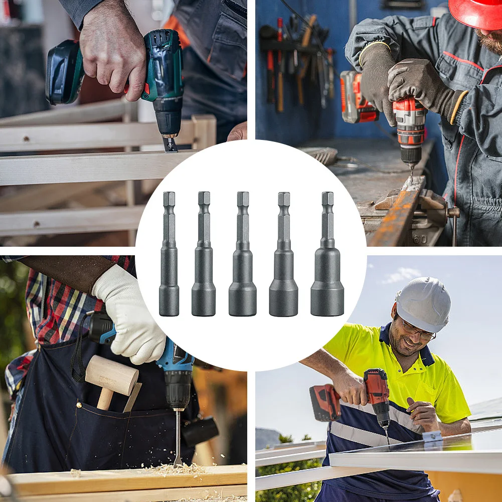 - > Adaptador de broca para brocas elétricas, chave de fenda porca, chave hexagonal, 1,4, 5,16, 3,8, 7,16, 1,2 Polegada, 5Pcs