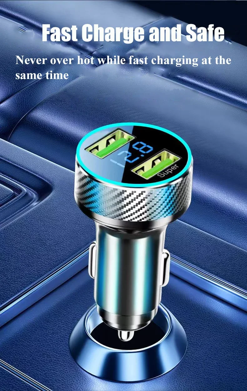 - > Adaptador de carregador de carro USB 2 em 1 300W Carga super rápida com monitor de tensão para iPhone Samsung iPad Huawei Oneplus OPPO VIVO