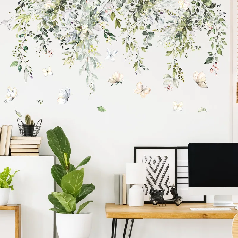 Adesivo de parede de videiras aquarela, decoração de casa, à prova d'água, autoadesivo, decoração de quarto, sala de estar, vegetação, arte, berçário