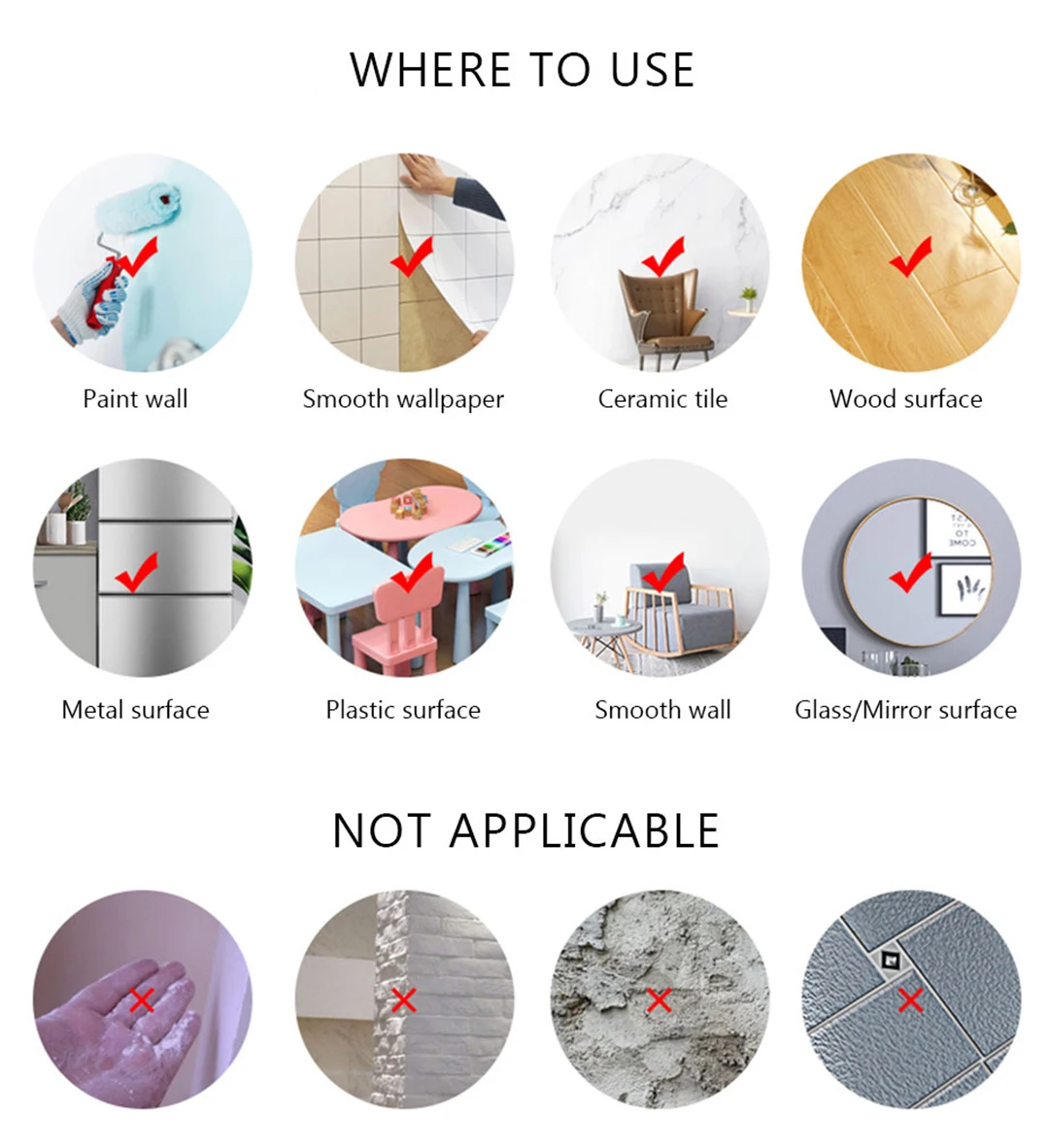 -por favor, certifique-se de que a superfície esteja lisa e limpa, sem sujeira e áspera, caso contrário o adesivo pode cair.