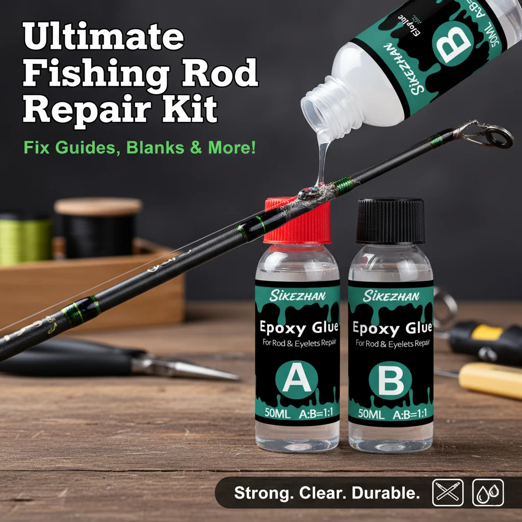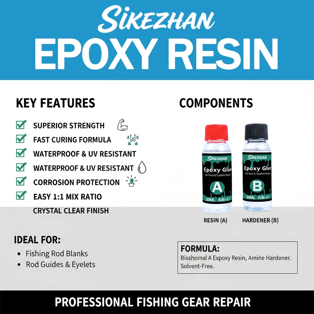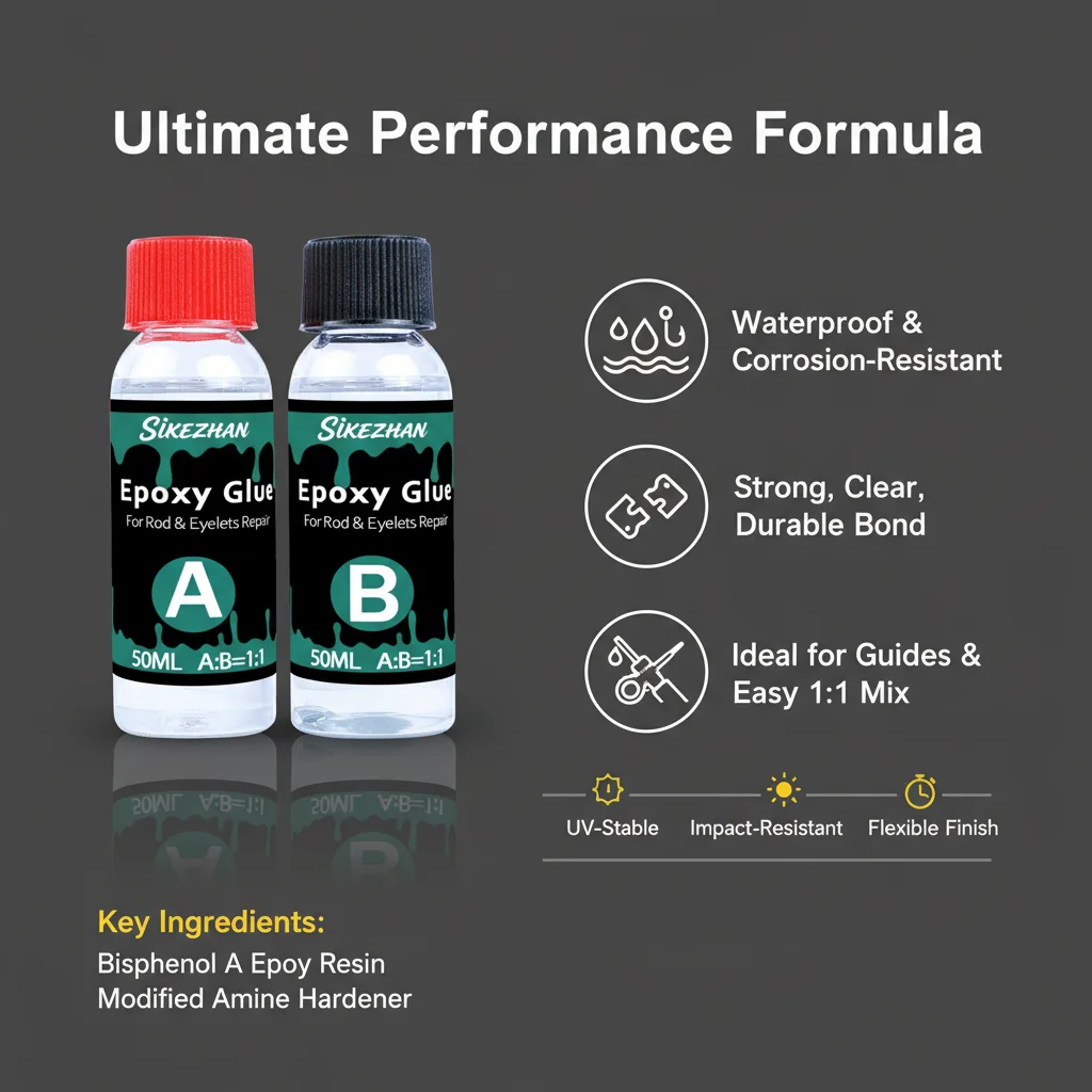 Adesivo de Resina Epóxi AB 1:1 para Reparo de Varas de Pesca e Ilhoses, Adesão Forte Transparente, Cura Rápida, Lixável/Pintável, Carbono/Fibra de Vidro