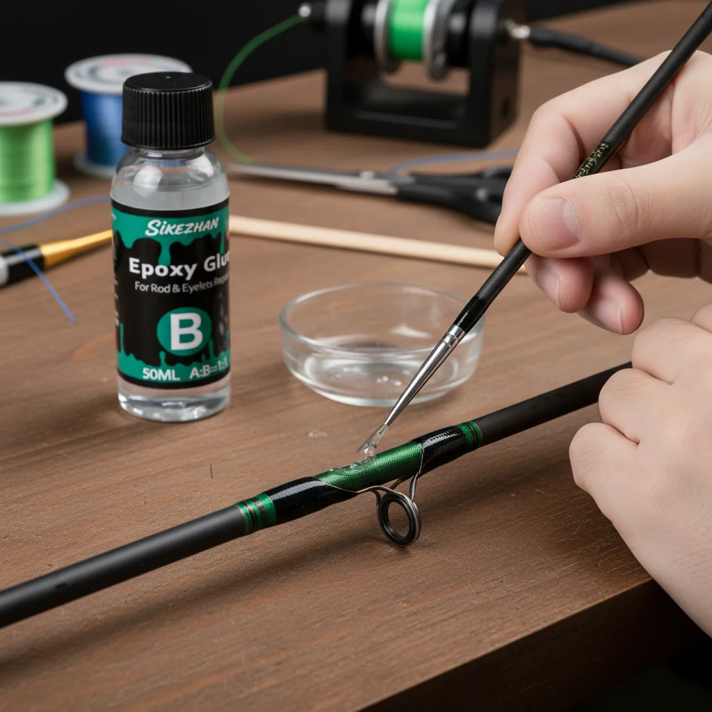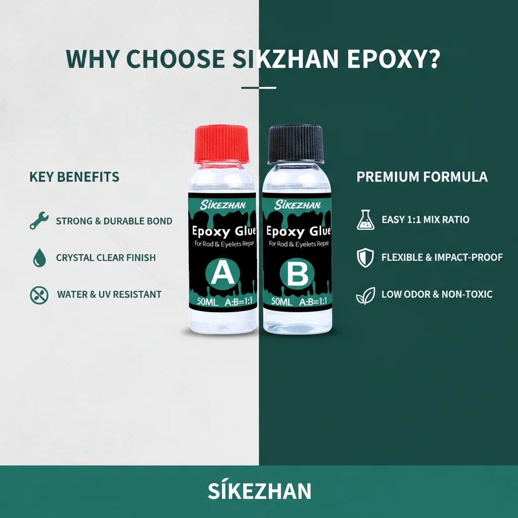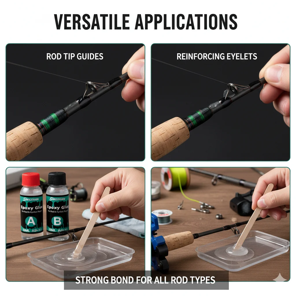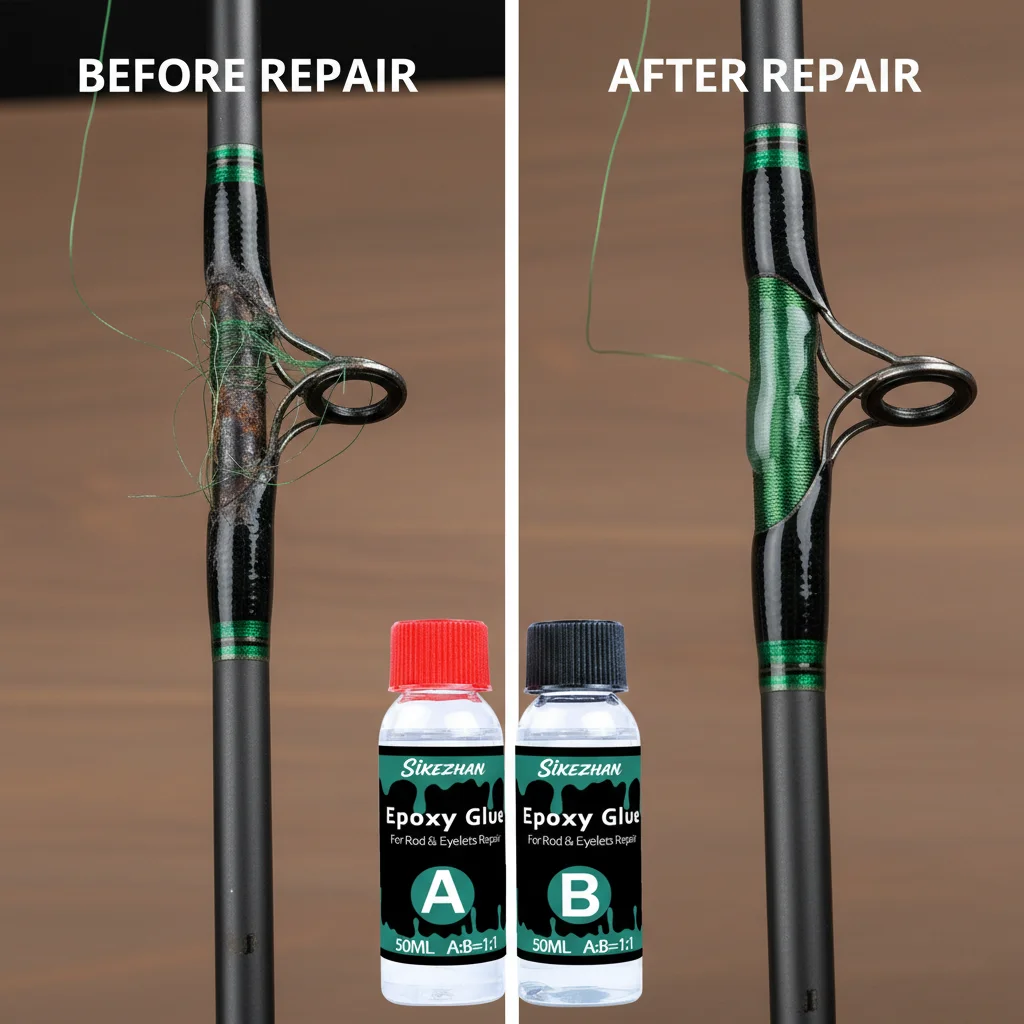 Adesivo de Resina Epóxi AB 1:1 para Reparo de Varas de Pesca e Ilhoses, Adesão Forte Transparente, Cura Rápida, Lixável/Pintável, Carbono/Fibra de Vidro
