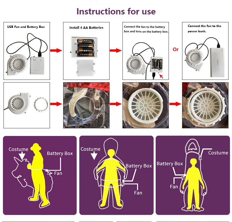 1.Fonte de alimentação: Usa 4 pilhas AA ou banco de potência USB (não incluído)