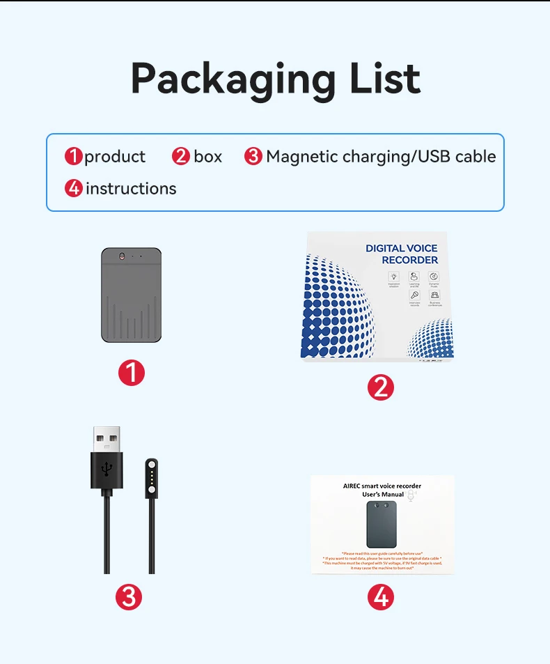 Functions: Voice recorder with Magnetic attraction