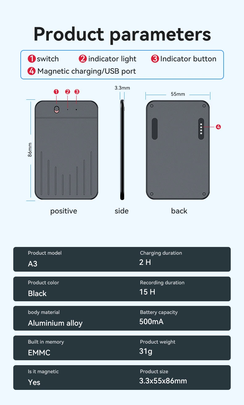 Número do modelo: New style APP Control Phone Calls recording with Magnetic attraction