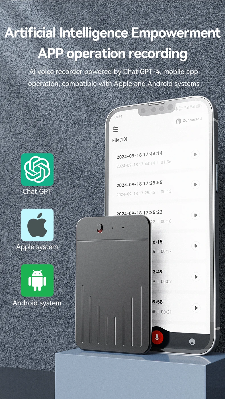 - > Ai powerd ChatGPT-4 app chamada telefônica mini gravador de voz de áudio espia transcribe summarize 58 tradutor de idiomas ditaphone de áudio