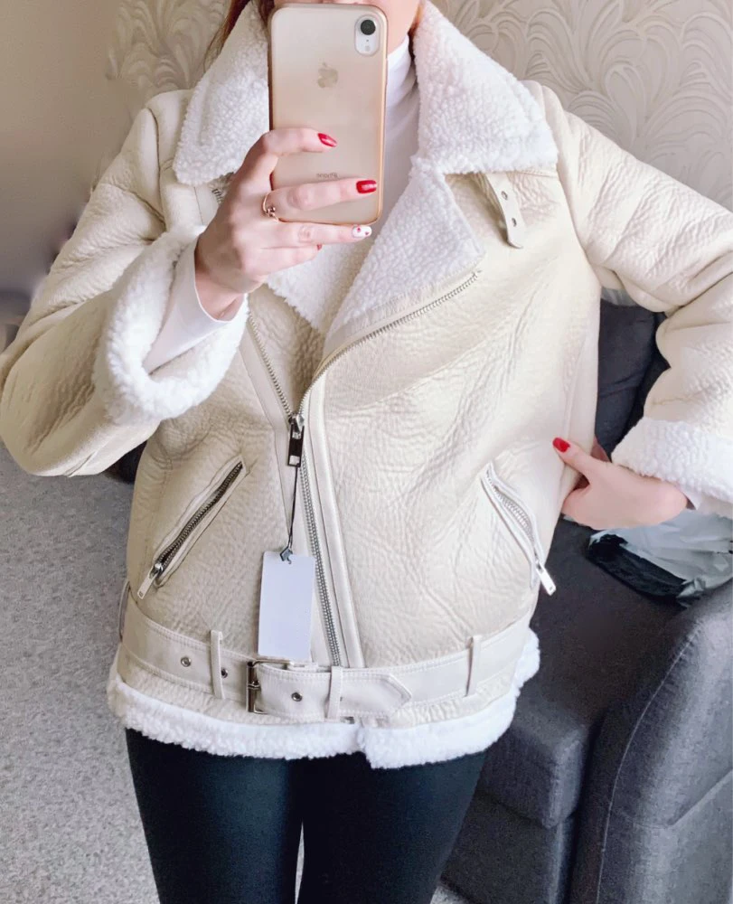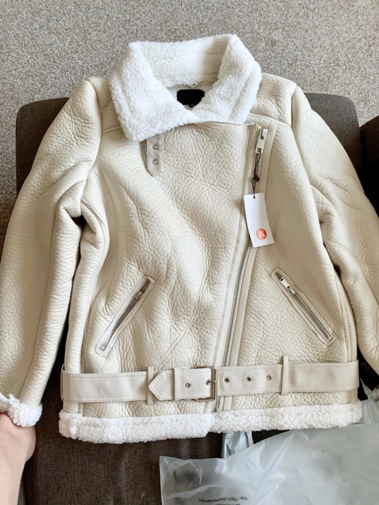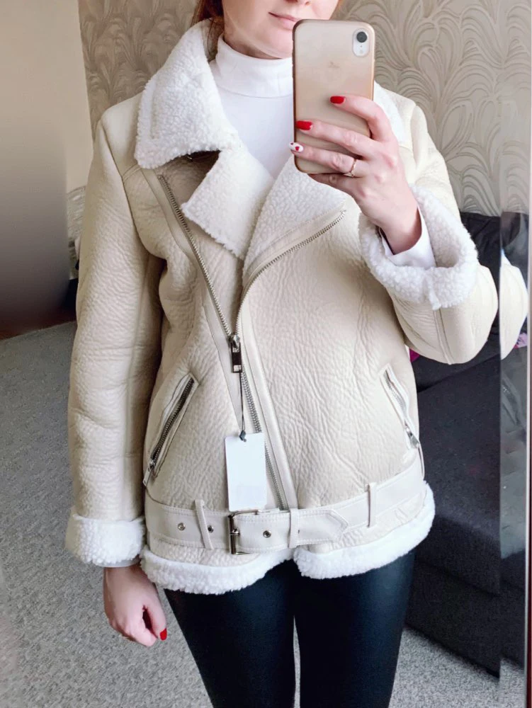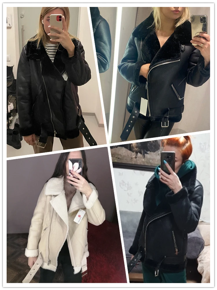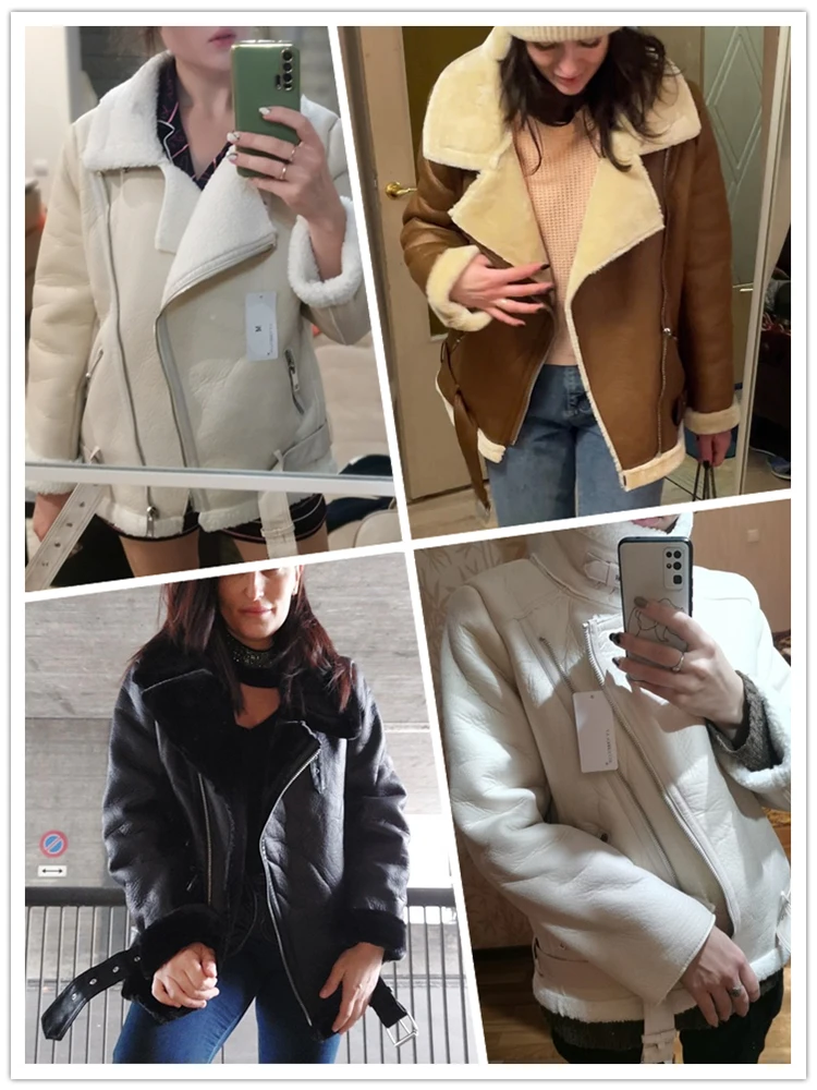 - > Ailegogo casacos de inverno feminino grosso pele do falso casaco de pele carneiro feminino pele emendada jaqueta aviador outwear casaco feminino