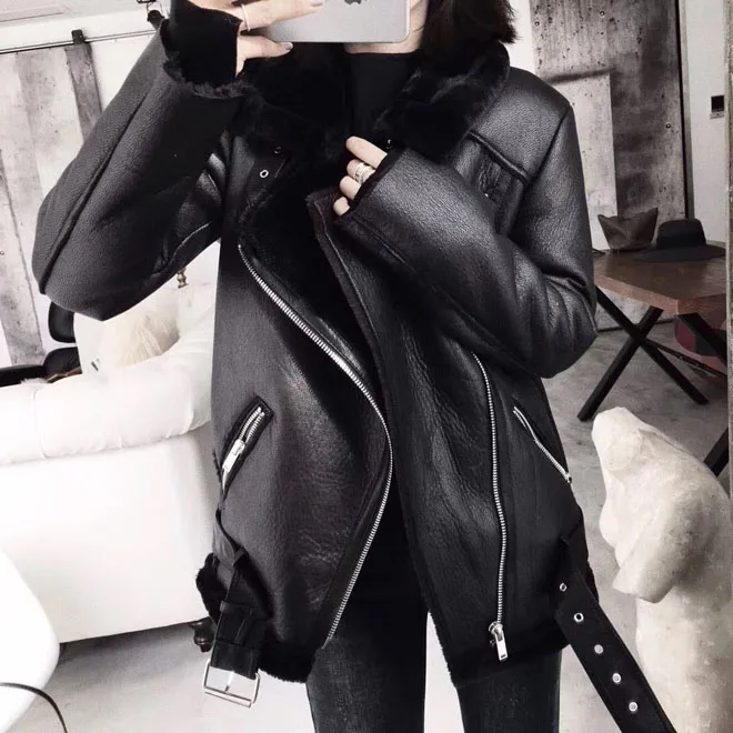 Ailegogo casacos de inverno feminino grosso pele do falso casaco de pele carneiro feminino pele emendada jaqueta aviador outwear casaco feminino