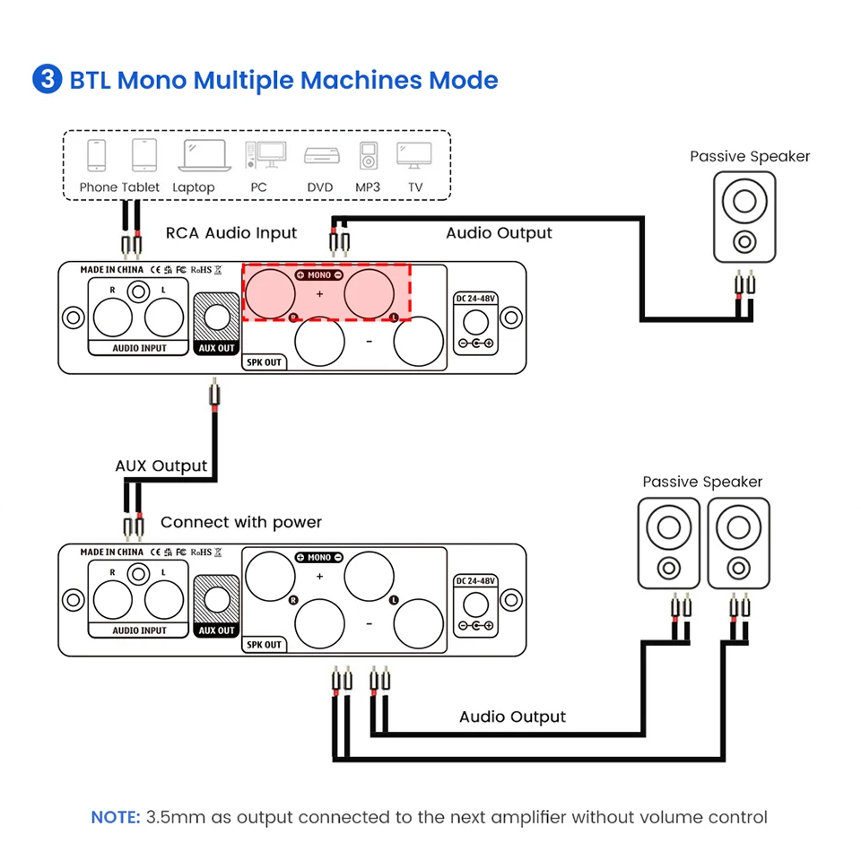 3.5mm AUX OUT as output connect to next amplifier without volume control